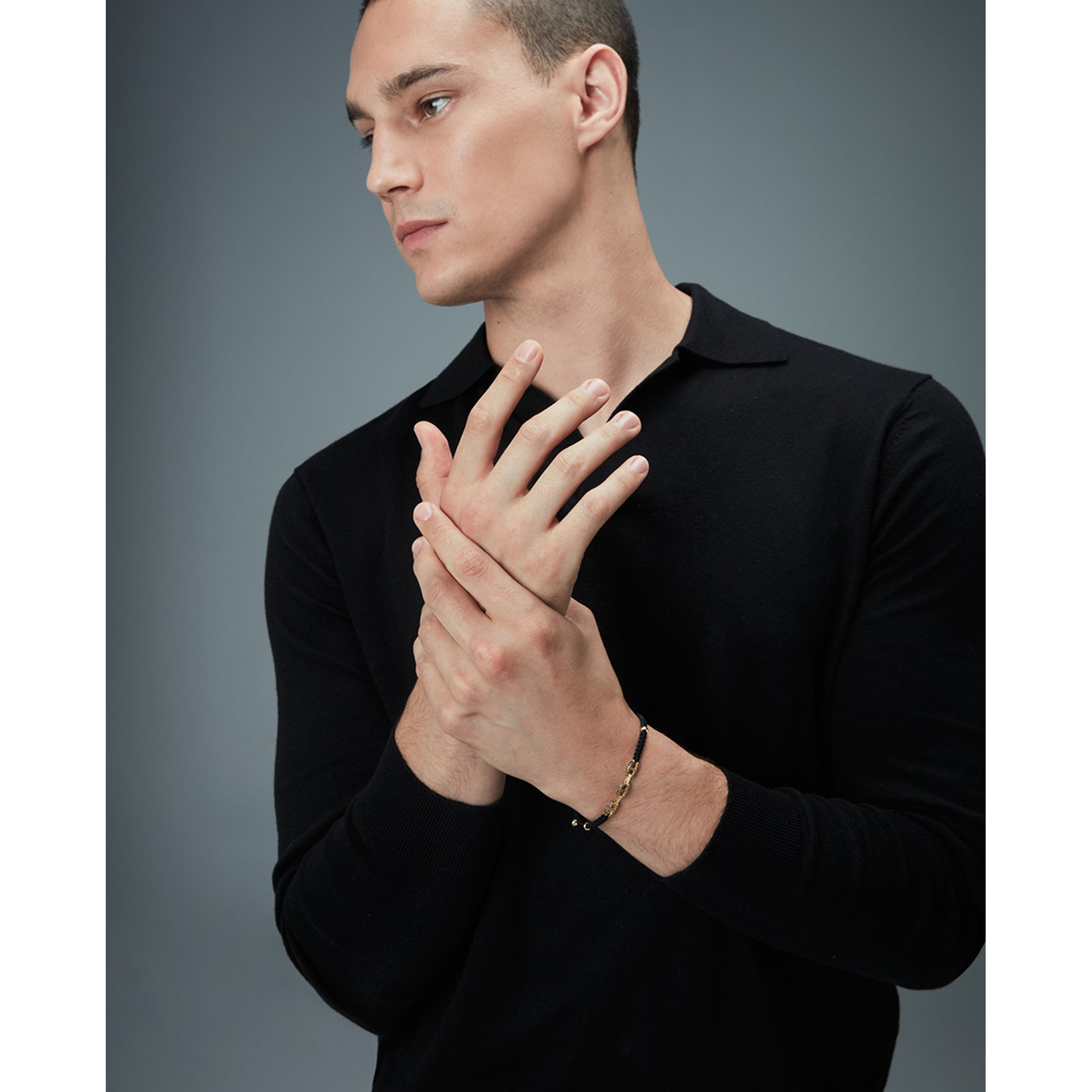 Pulsera de plata de primera ley con baño de oro y cordon negro