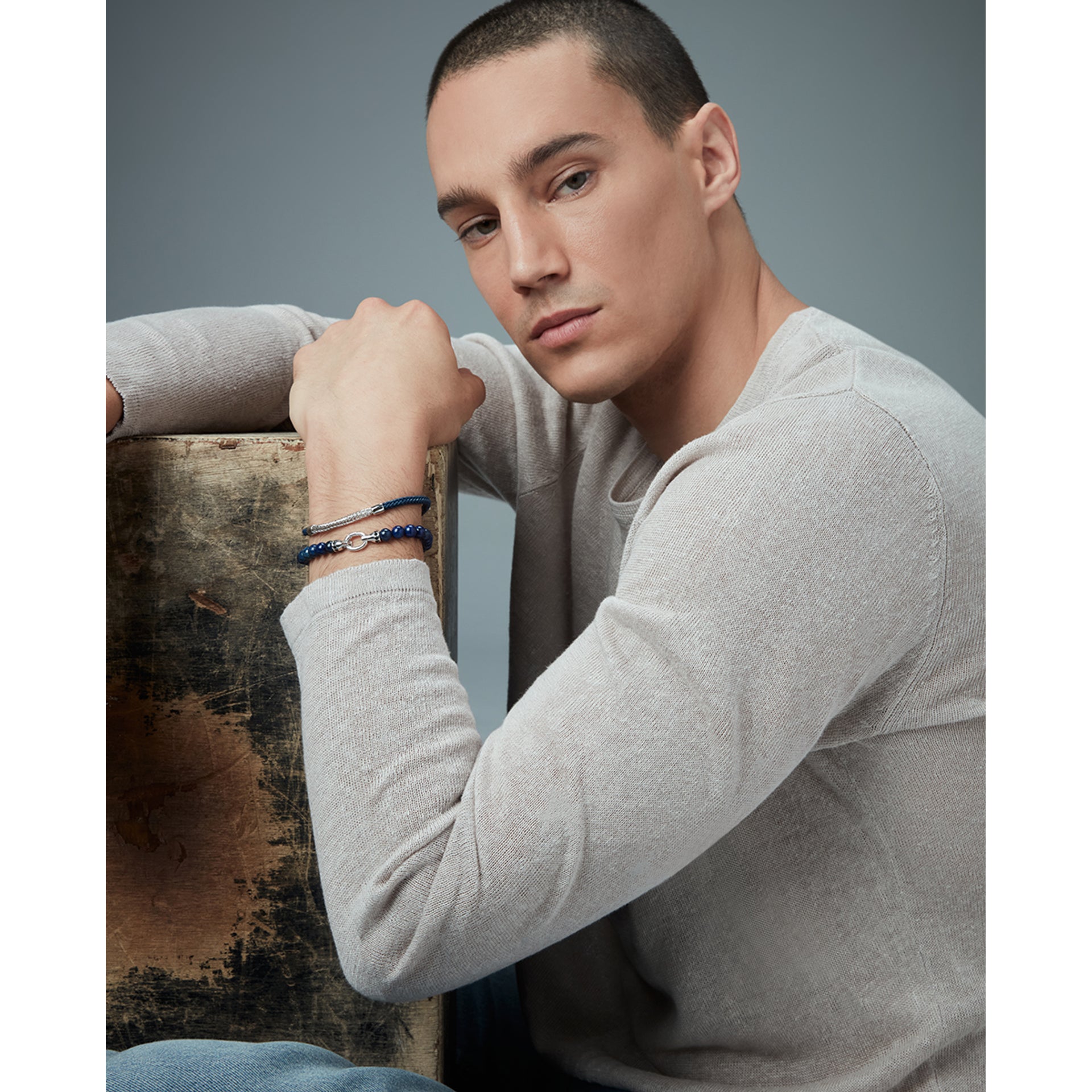 Pulsera de hombre de acero Ip negro con piedras de záfiro naturales