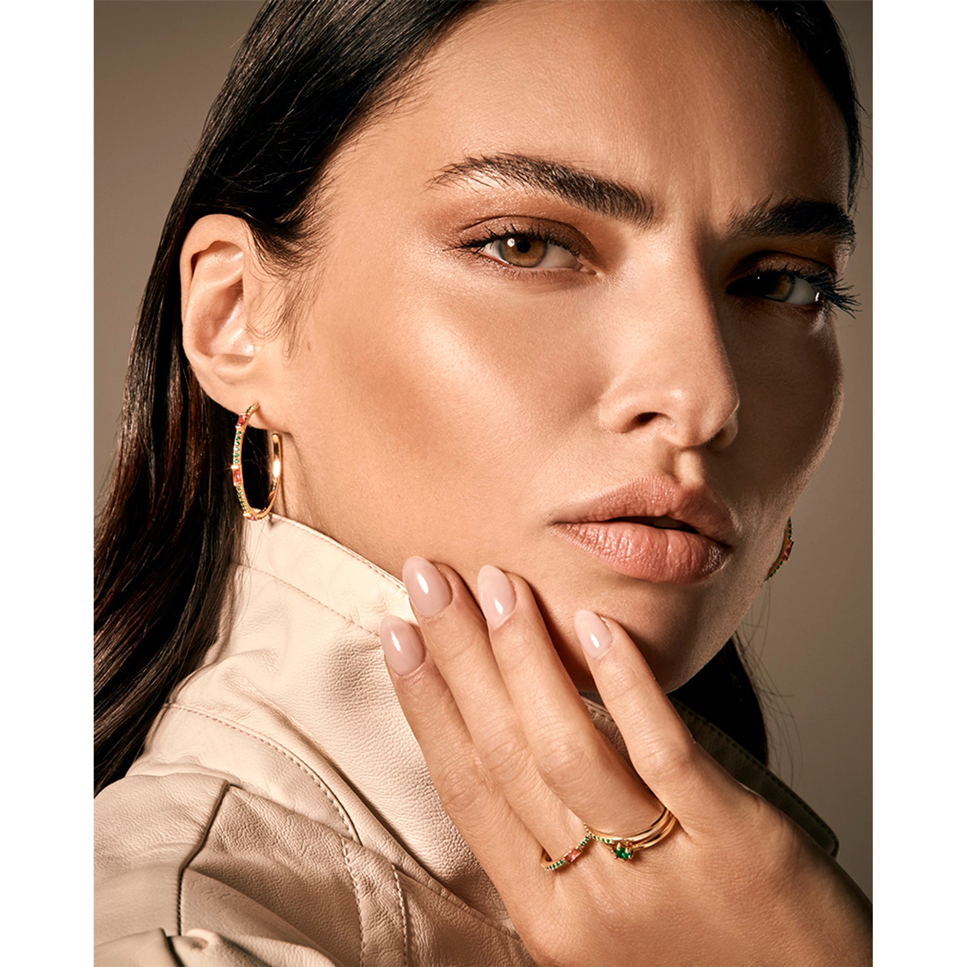 Collar Trend de plata de ley con baño de oro y anilla de flores con circonitas multicolores
