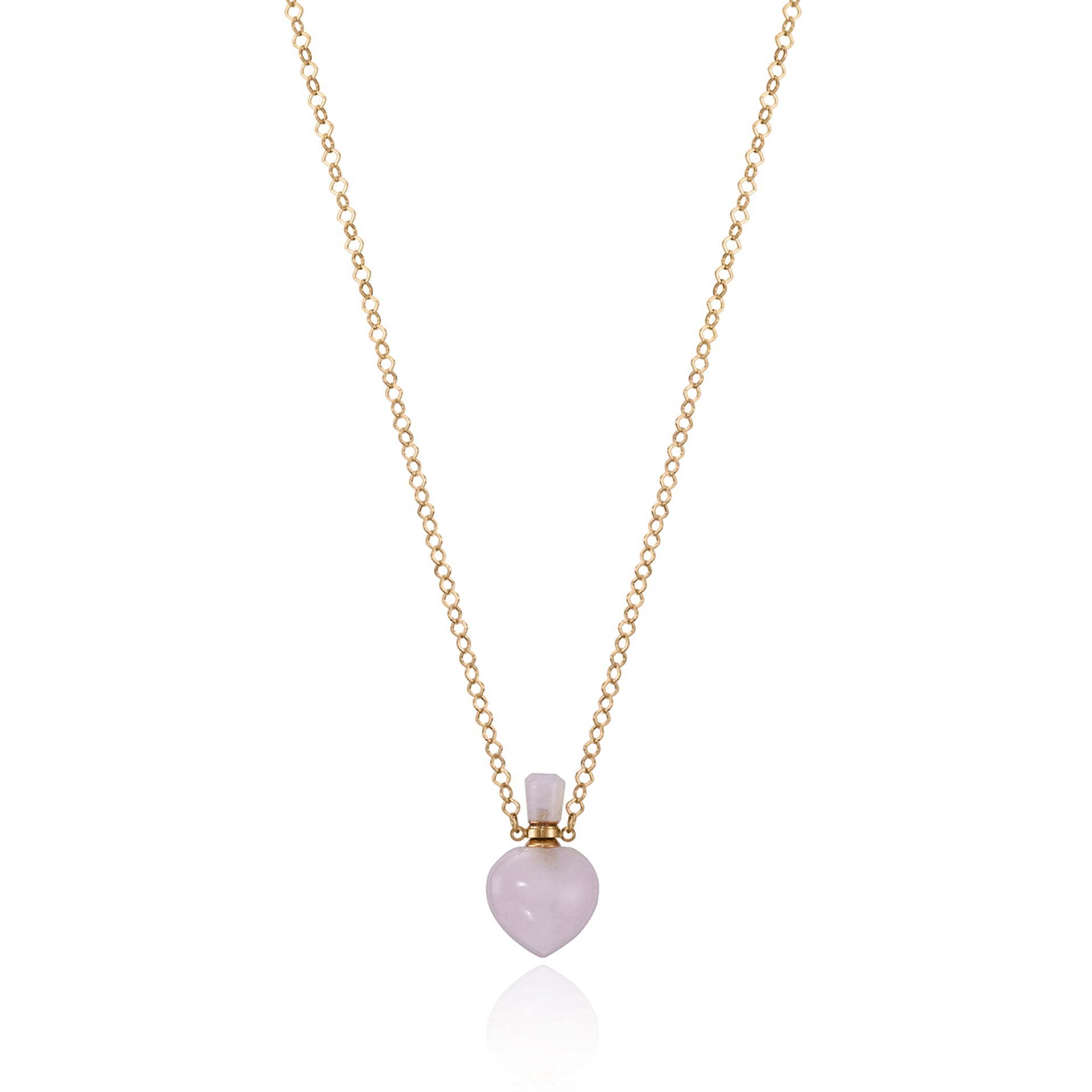 Collar Chic largo tipo perfumero de acero en Ip dorado y cuarzo rosa