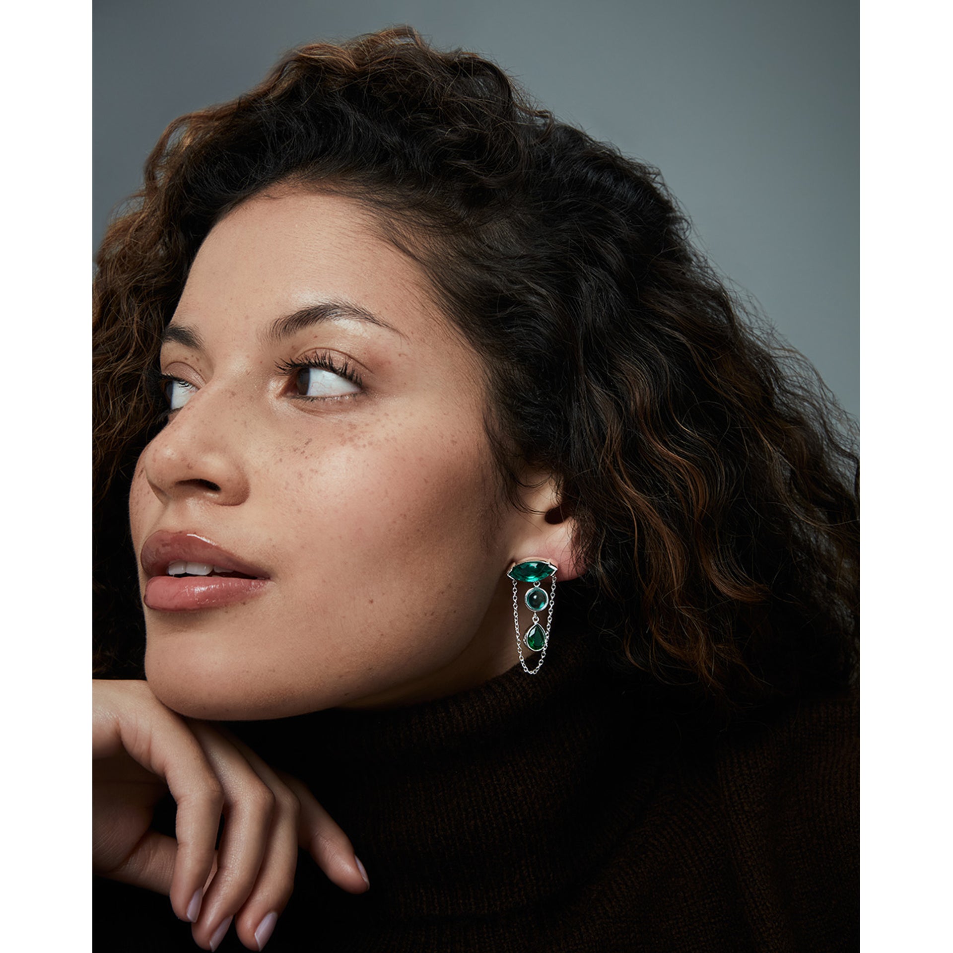 Pendientes de mujer de acero chapado plata 999 con cristales azules y verdes y cadena colgante