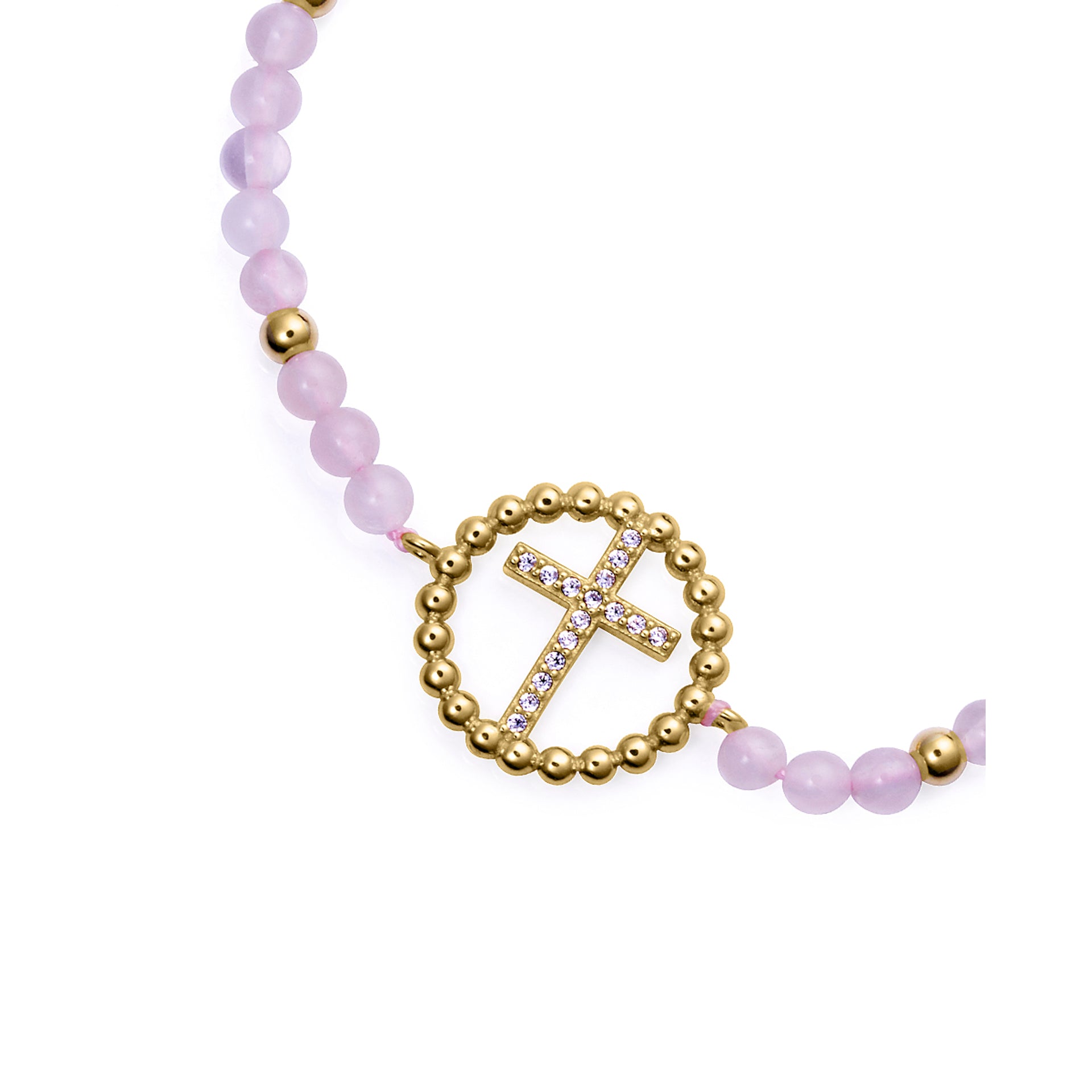 Pulsera de niña plata de primera ley con baño de oro y piedras naturales con cruz de motivo