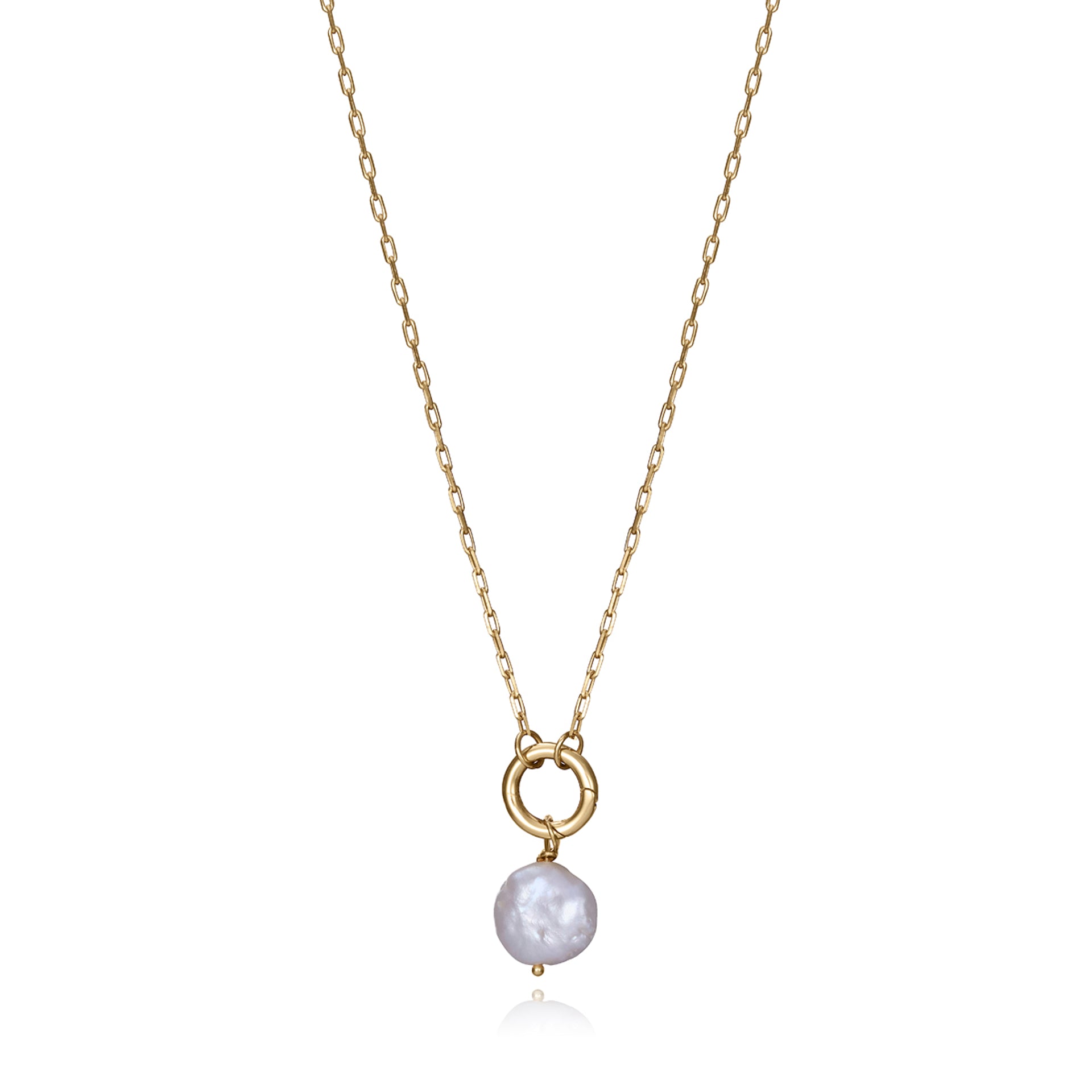 Collar Elegant de plata de ley con baño de oro y aro con colgante de perla cultivada