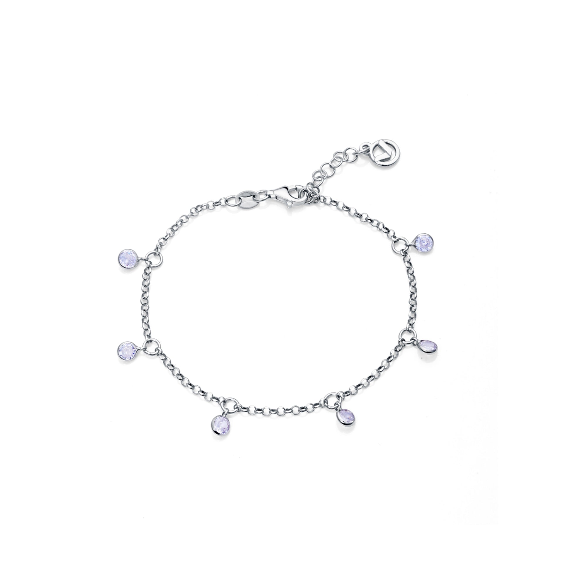 Pulsera cadena Clásica de plata de ley con baño de rodio y circonitas blancas colgantes