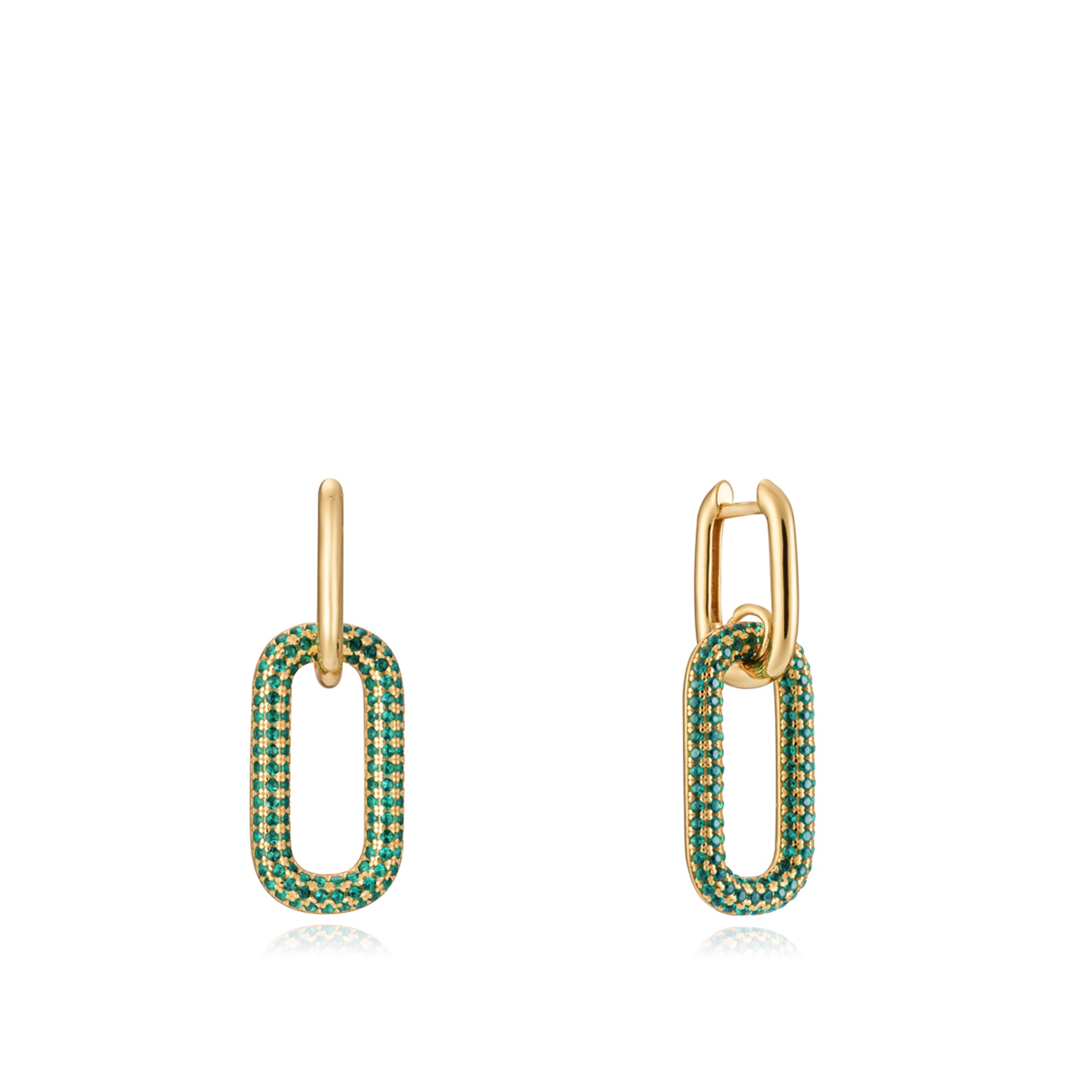 Pendientes Elegant de plata de ley con baño de oro y circonitas verdes