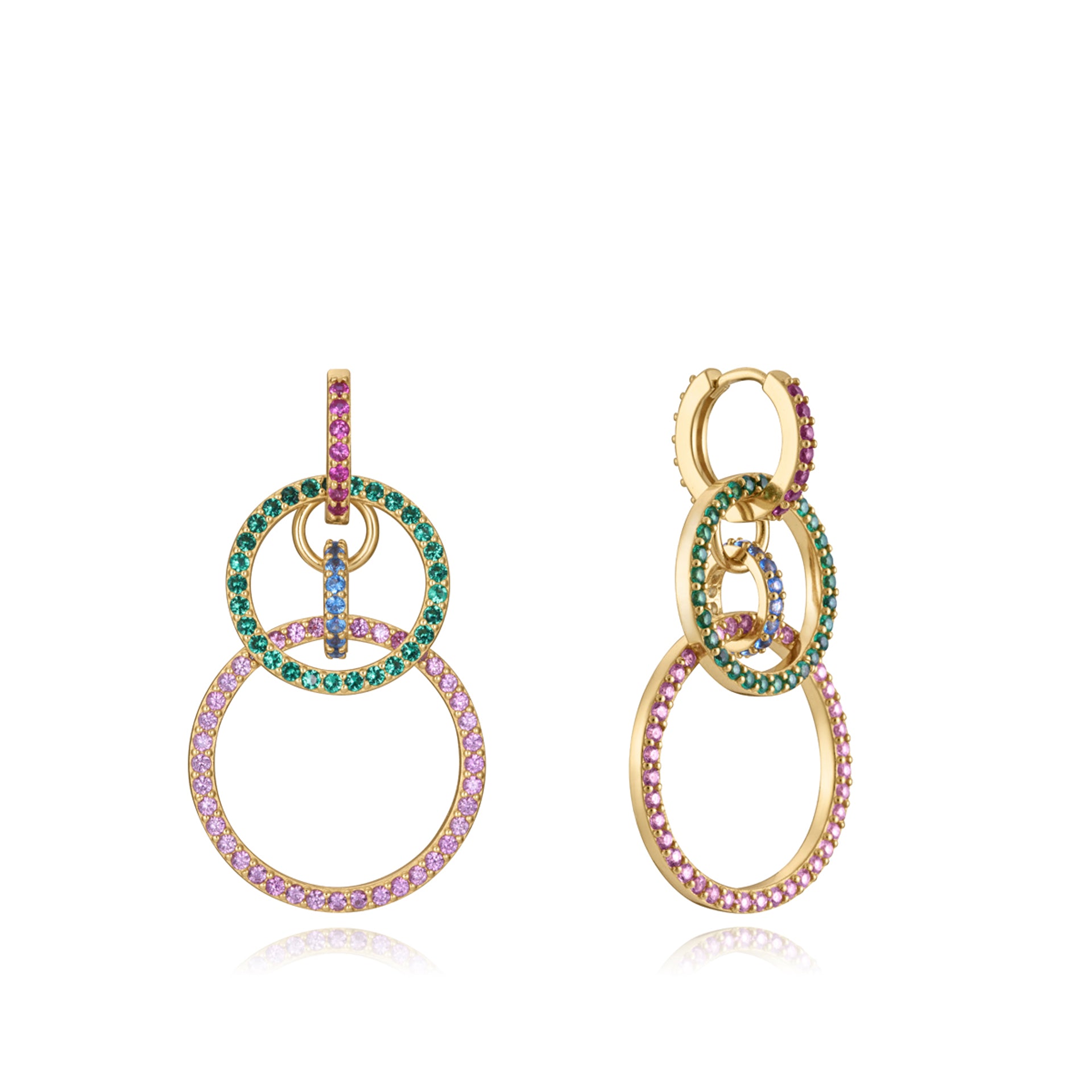 Pendientes Elegant de plata con baño de oro y circonitas de colores