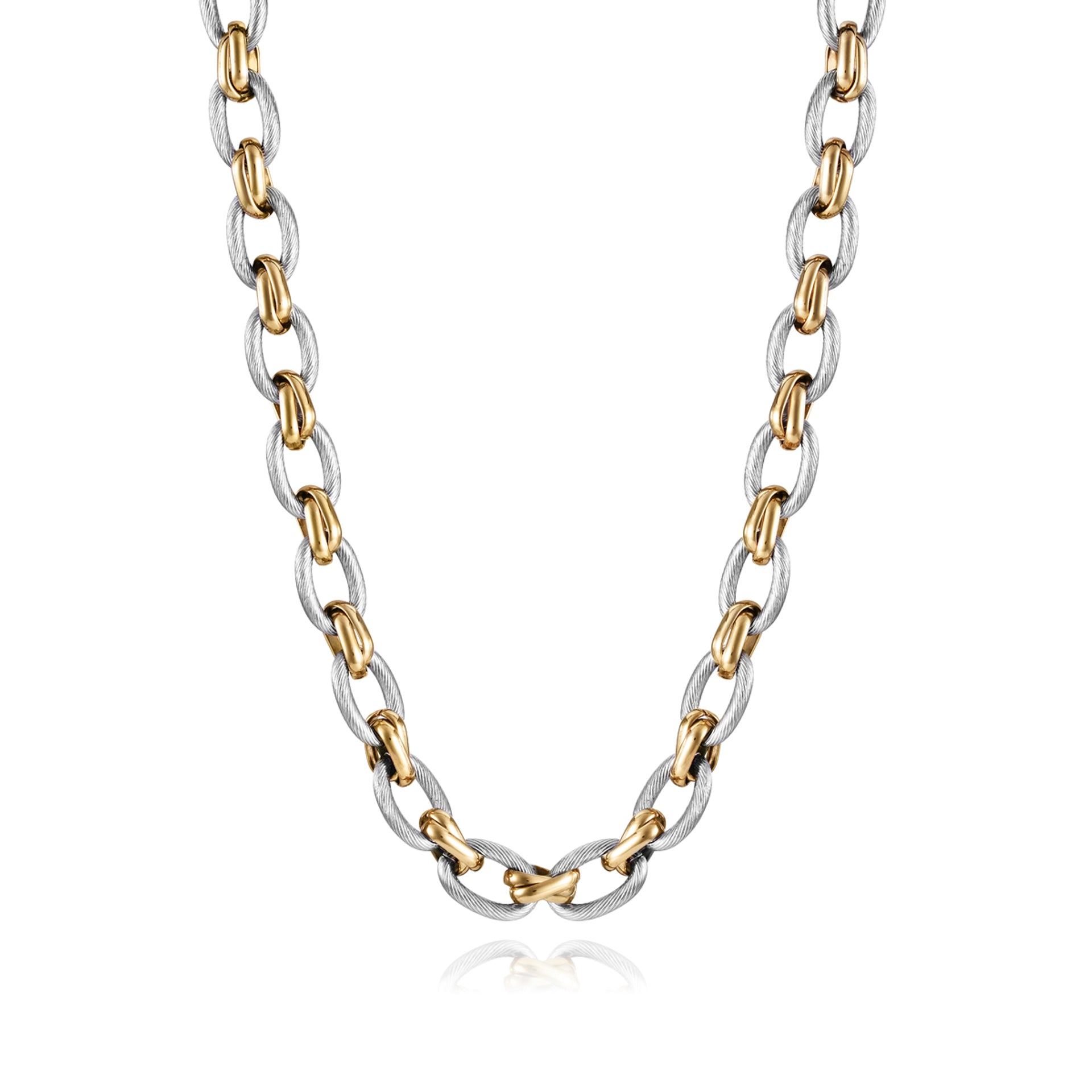 Collar colección de Laura Escanes, de acero bicolor con eslabones en acero e Ip dorado, de mujer largo 40 +5 cm extensión.