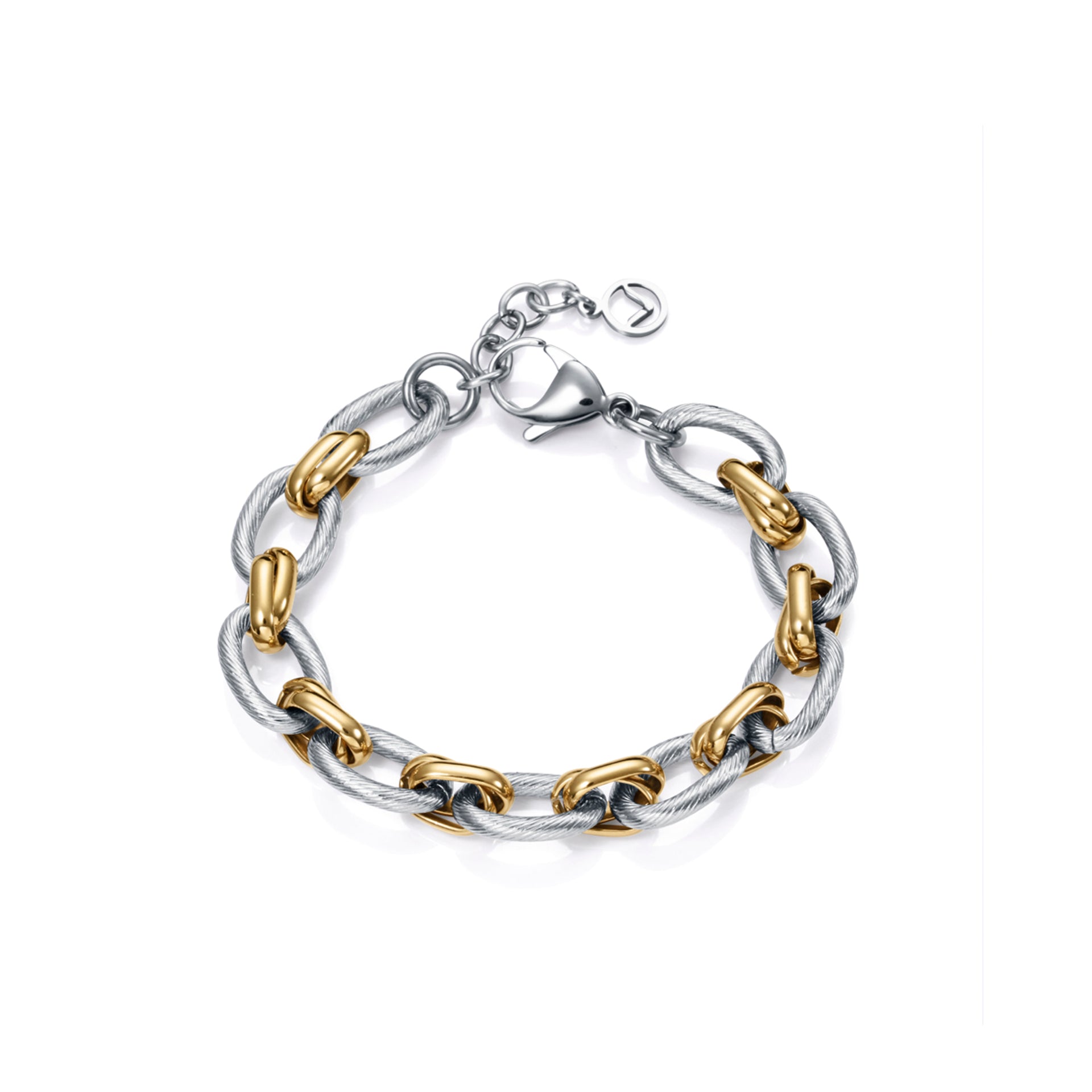 Pulsera colección de Laura Escanes, de acero bicolor con eslabones en acero e Ip dorado, de mujer largo 17,5 + 2 cm extensión.