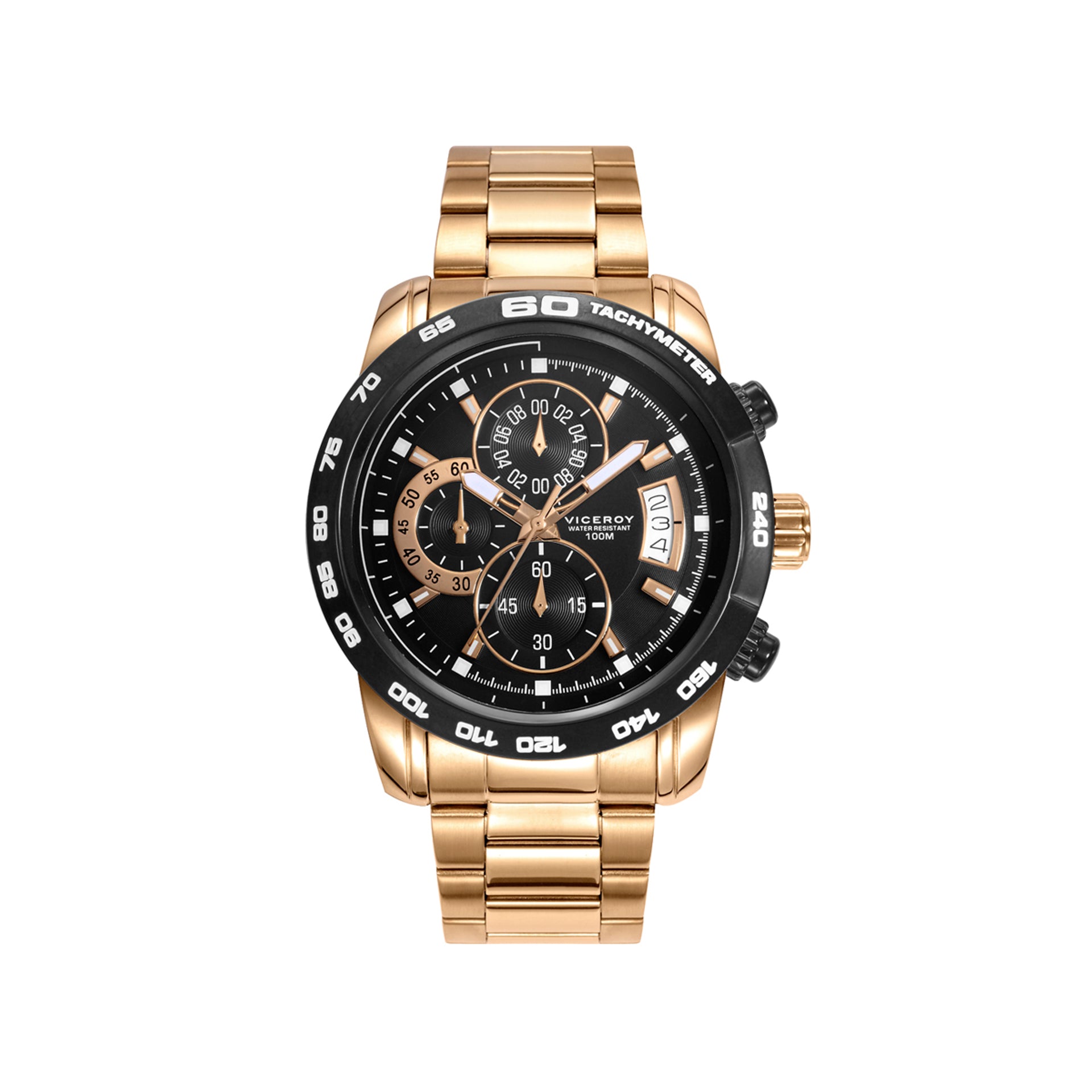 Reloj de hombre Heat de acero IP dorado y cronógrafo