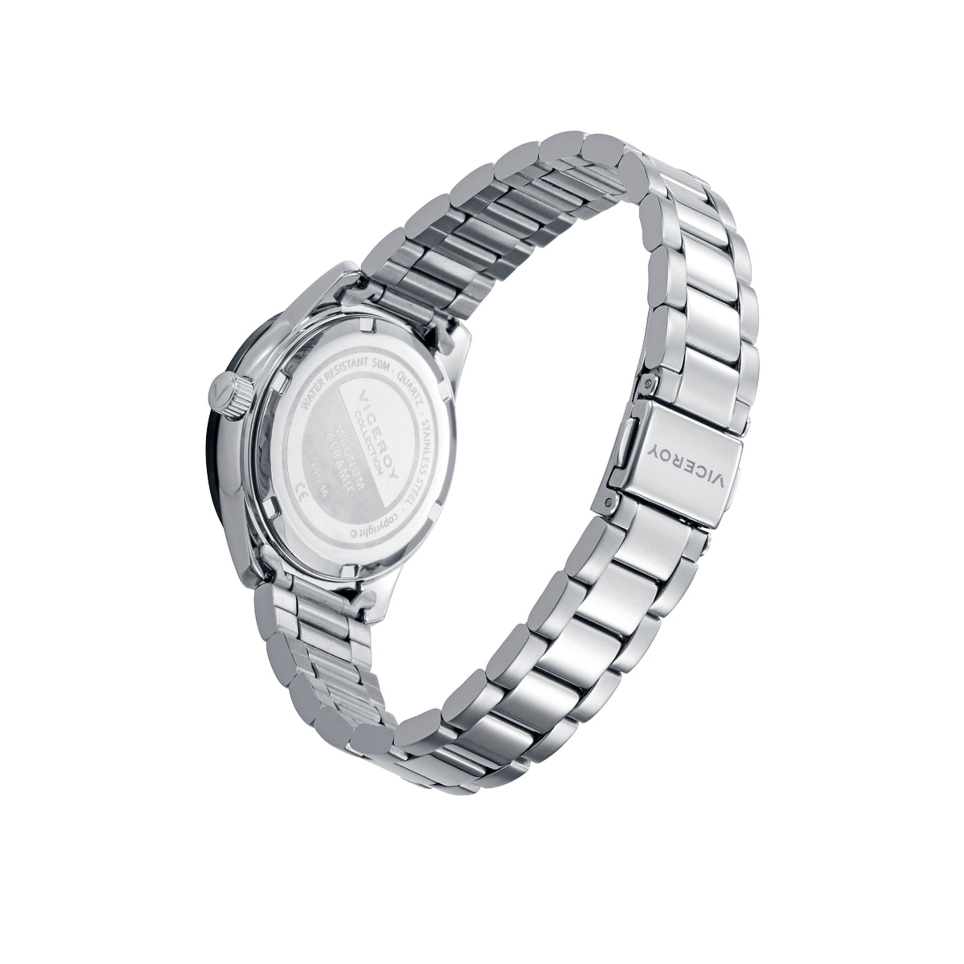 Reloj caja acero con corona en Ip rosa y brazalete bicolor acero Ip rosa con movimiento cuarzo