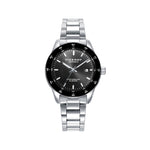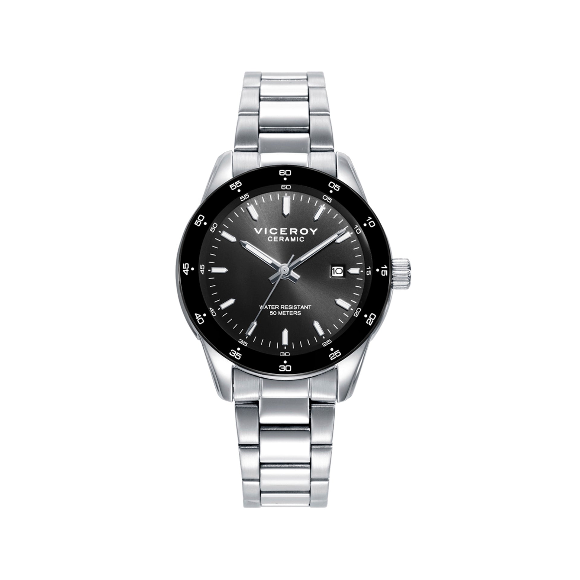 Reloj caja de acero con bisel cerámico negro 5 atm y brazalete acero con movimiento cuarzo