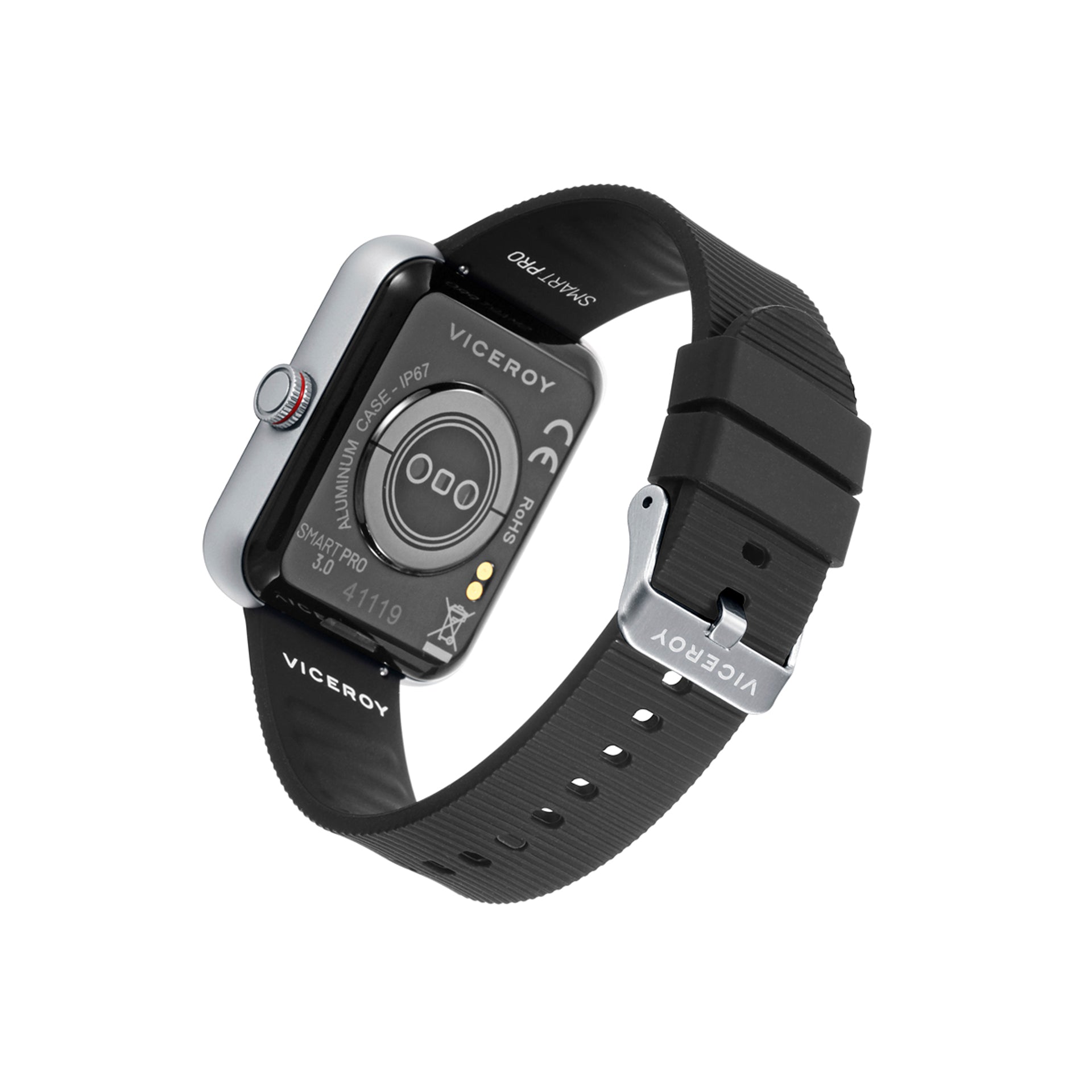 Smartwatch infantil Smartpro con correa de silicona negra y correa adicional con estampado de camuflaje gris