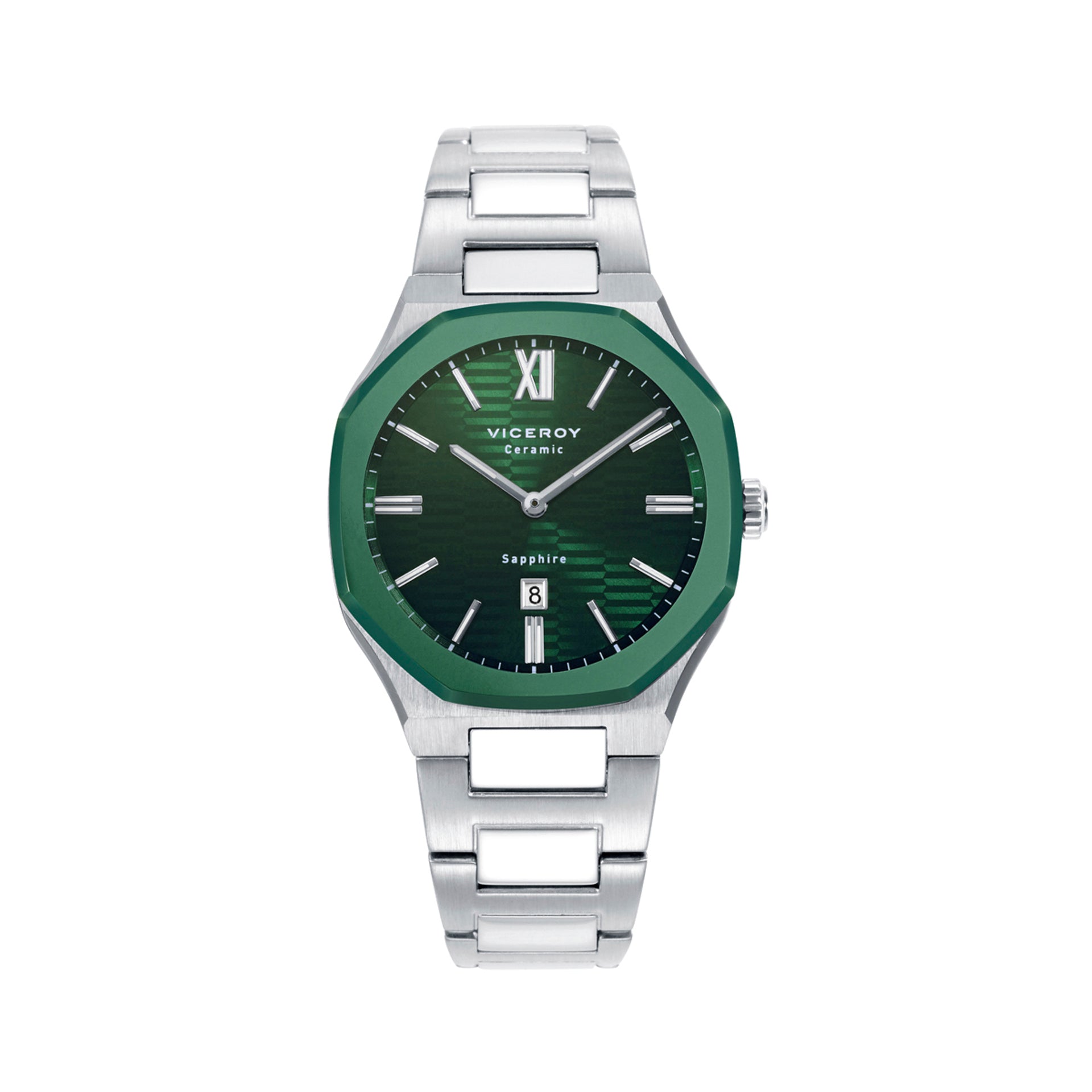 Reloj caja de acero Ip gris 5 atm y malla milanesa de acero Ip gris con movimiento cuarzo