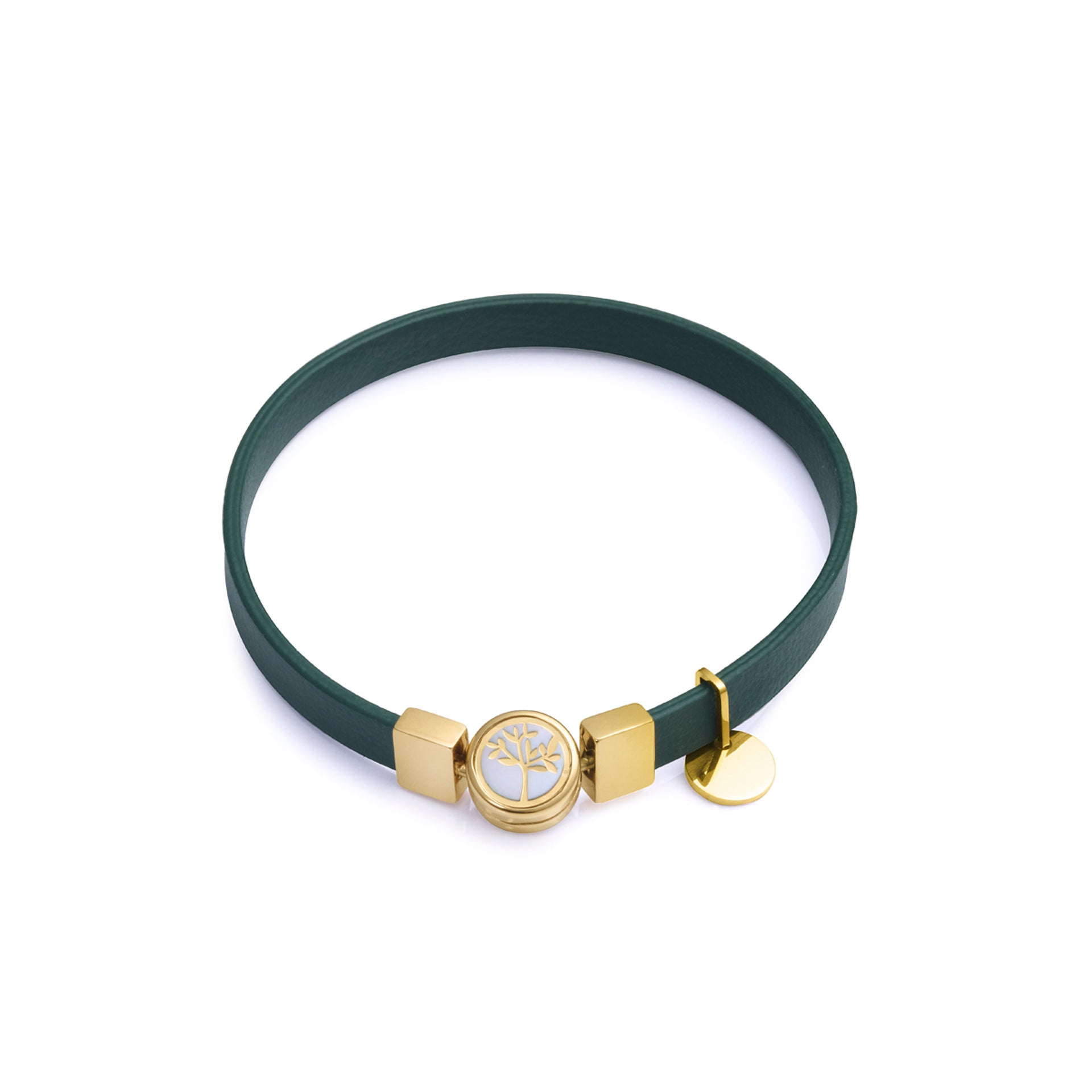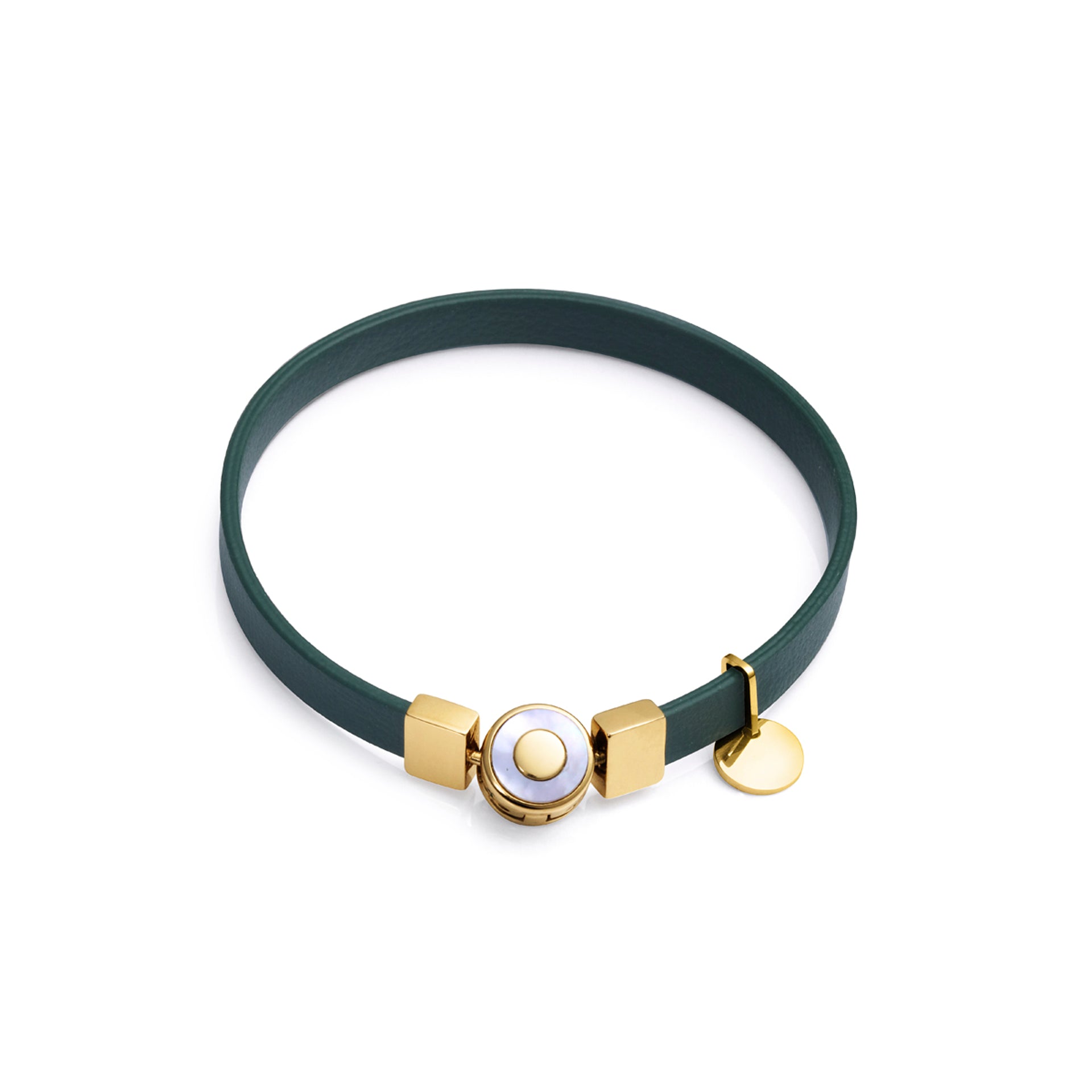 Pulsera Eco de acero reciclado e Ip dorado con correa vegana verde