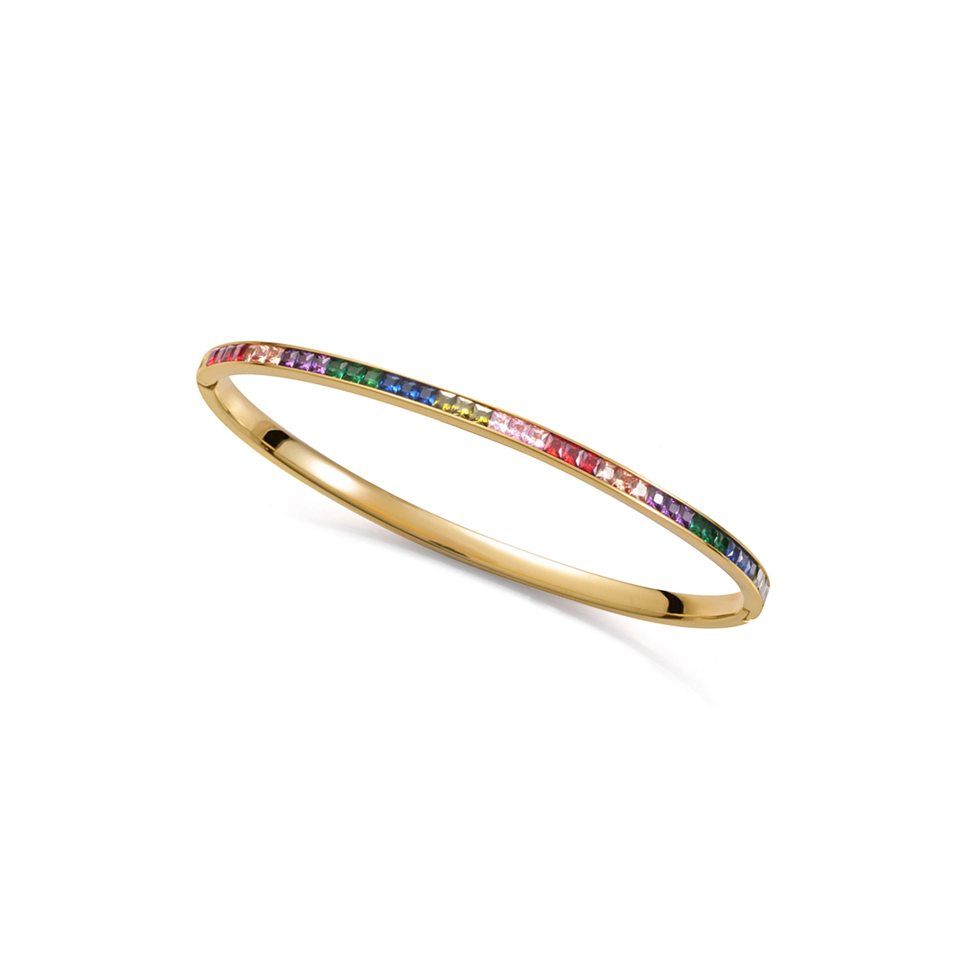Pulsera Chic de bisagra en dorado con circonitas de colores