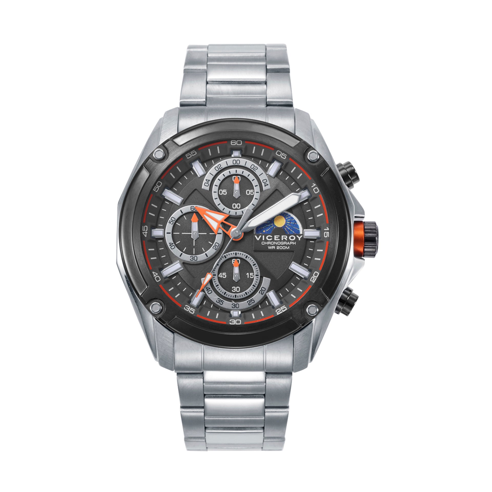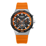 Reloj caja bitono de acero e Ip negro 20 Atm, correa de silicona naranja, movimiento cuarzo