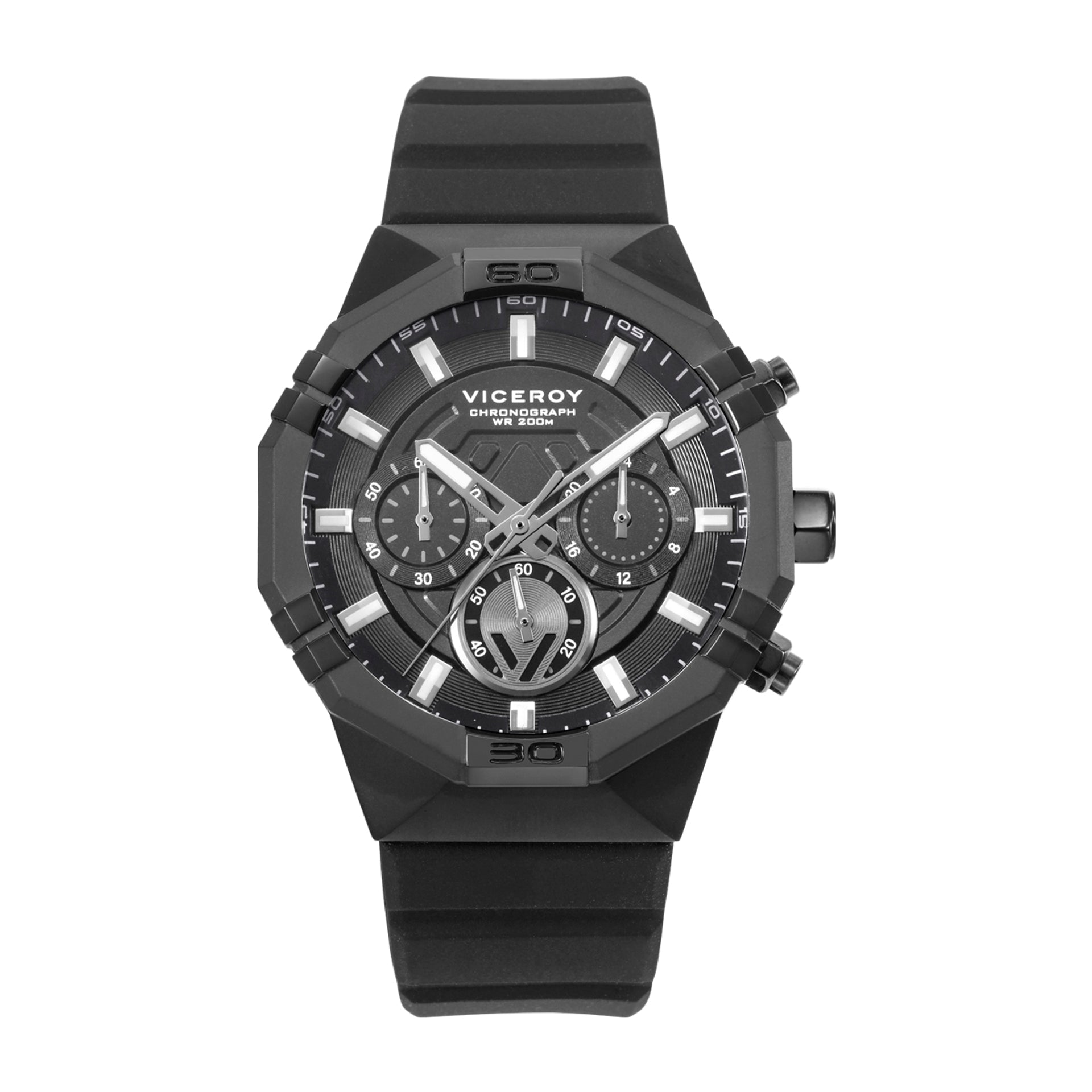 Reloj caja bitono de acero e Ip negro 20 Atm, correa de siliciona negra,movimiento cuarzo