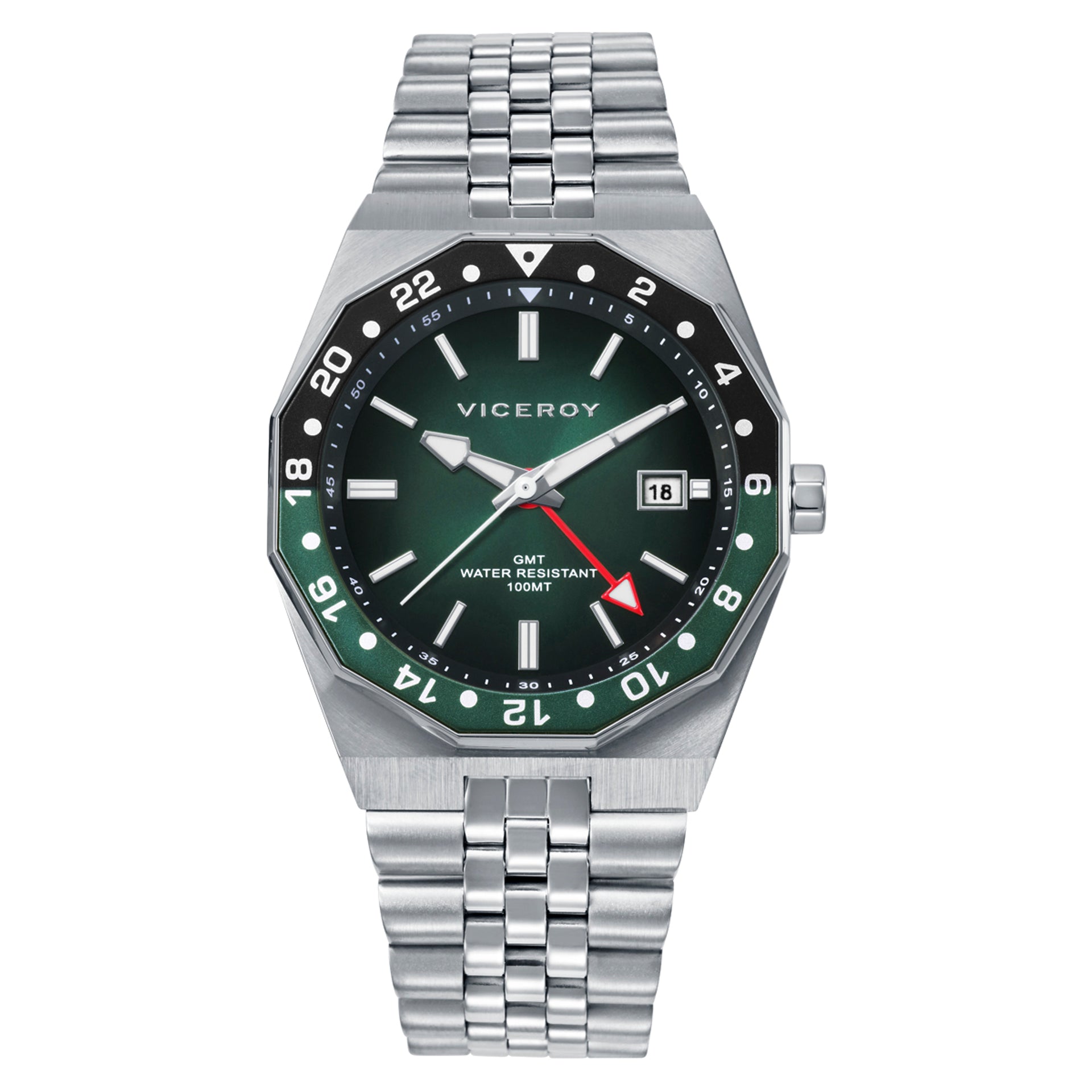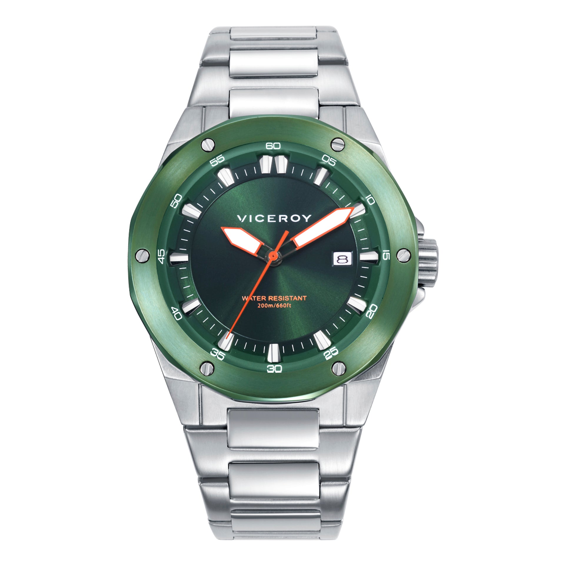 Reloj caja bitono de acero e Ip verde 20 Atm, correa de silicona verde, movimiento cuarzo
