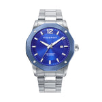 Reloj caja bitono de acero e Ip azul 20 Atm, correa de silicona azul, movimiento cuarzo