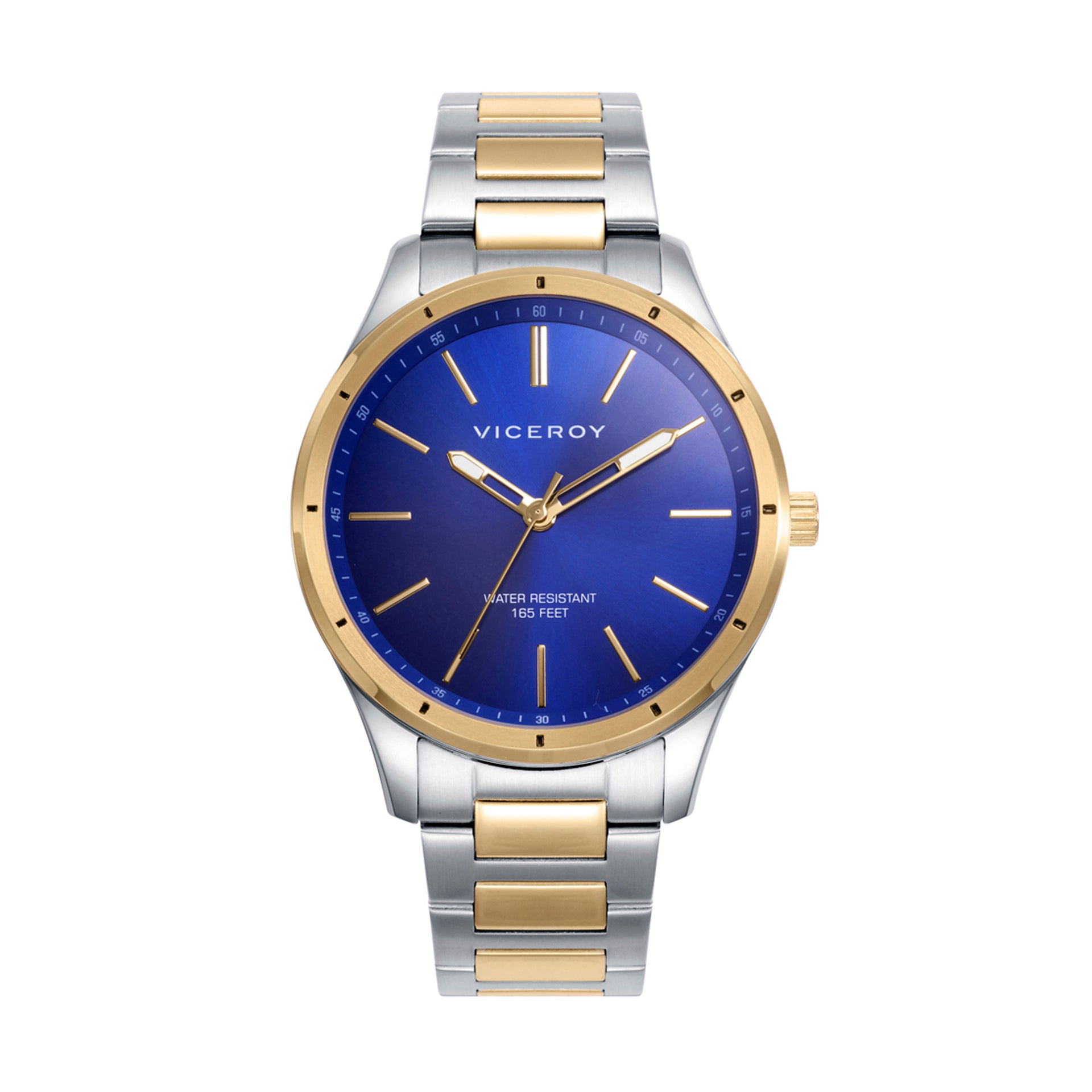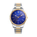 Reloj caja bitono de acero Ip dorado e Ip azul 20 Atm,brazalete de acero Ip dorado,movimento cuarzo