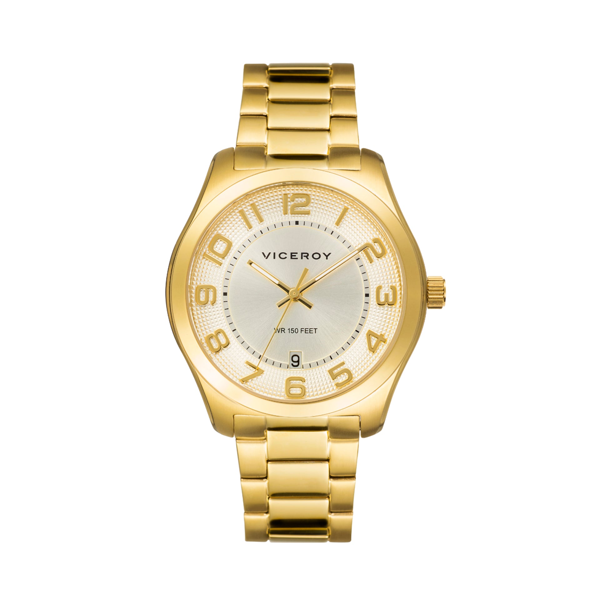 Reloj de hombre Grand 3 agujas de acero IP dorado