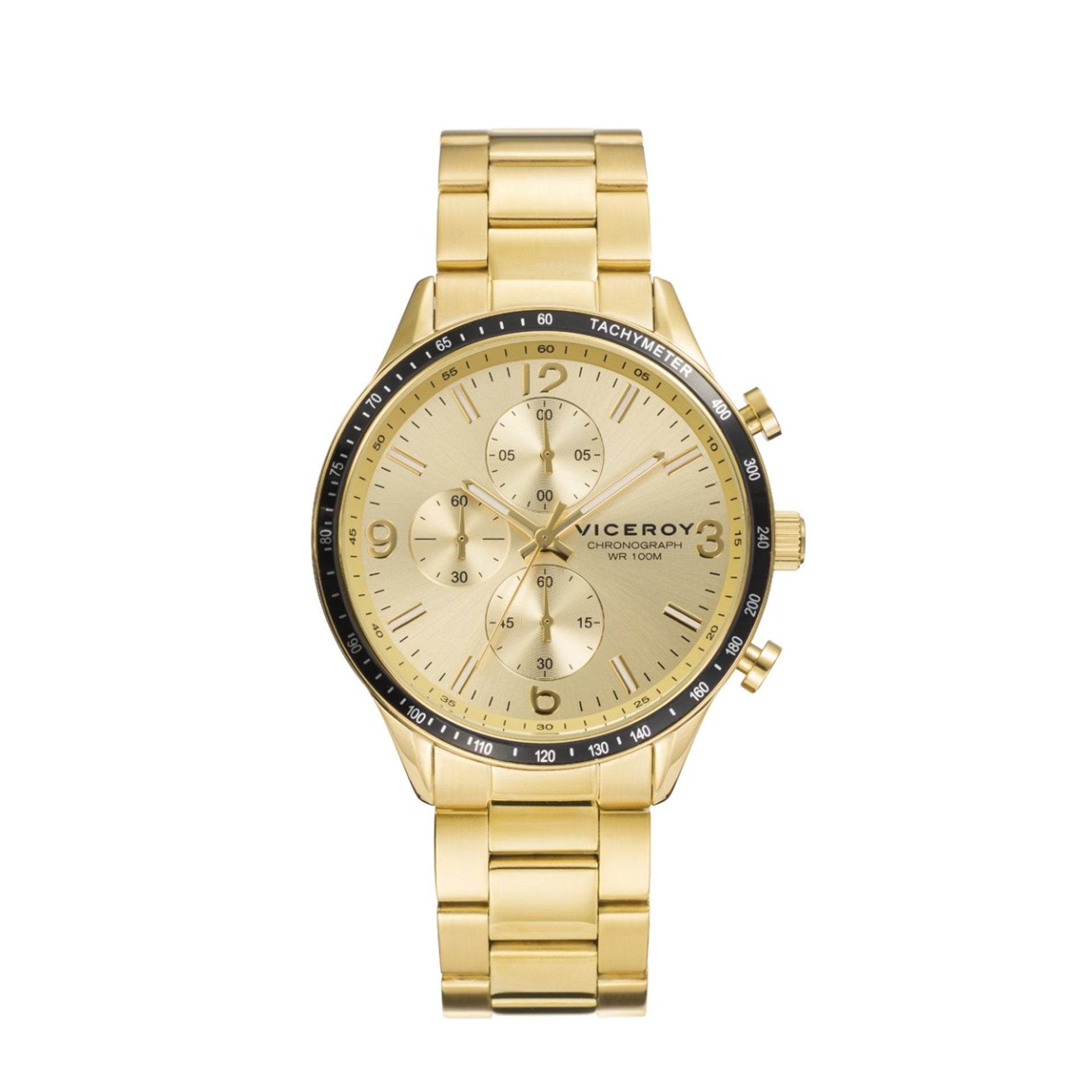 Reloj de hombre Heat de acero IP dorado con cronógrafo