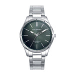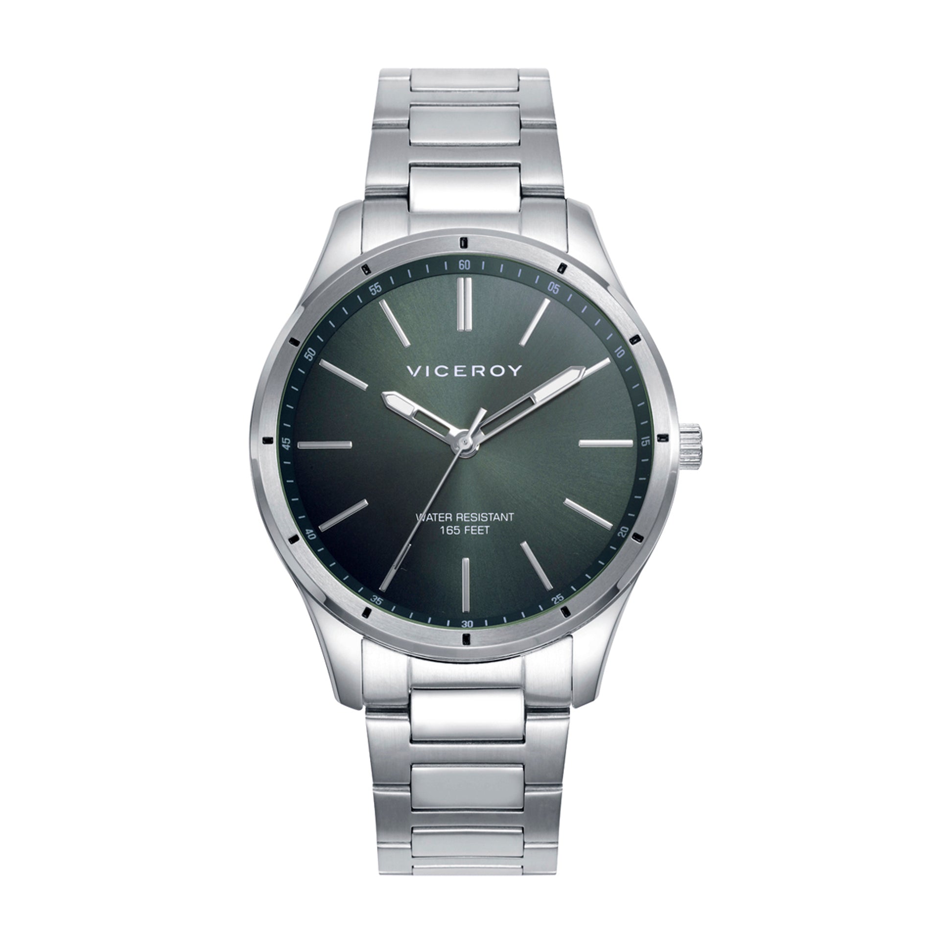 Reloj de acero con esfera verde y movimiento de cuarzo