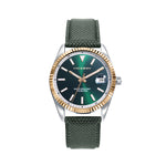 Reloj caja bitono de acero e Ip verde 20 Atm, correa de silicona verde, movimiento cuarzo