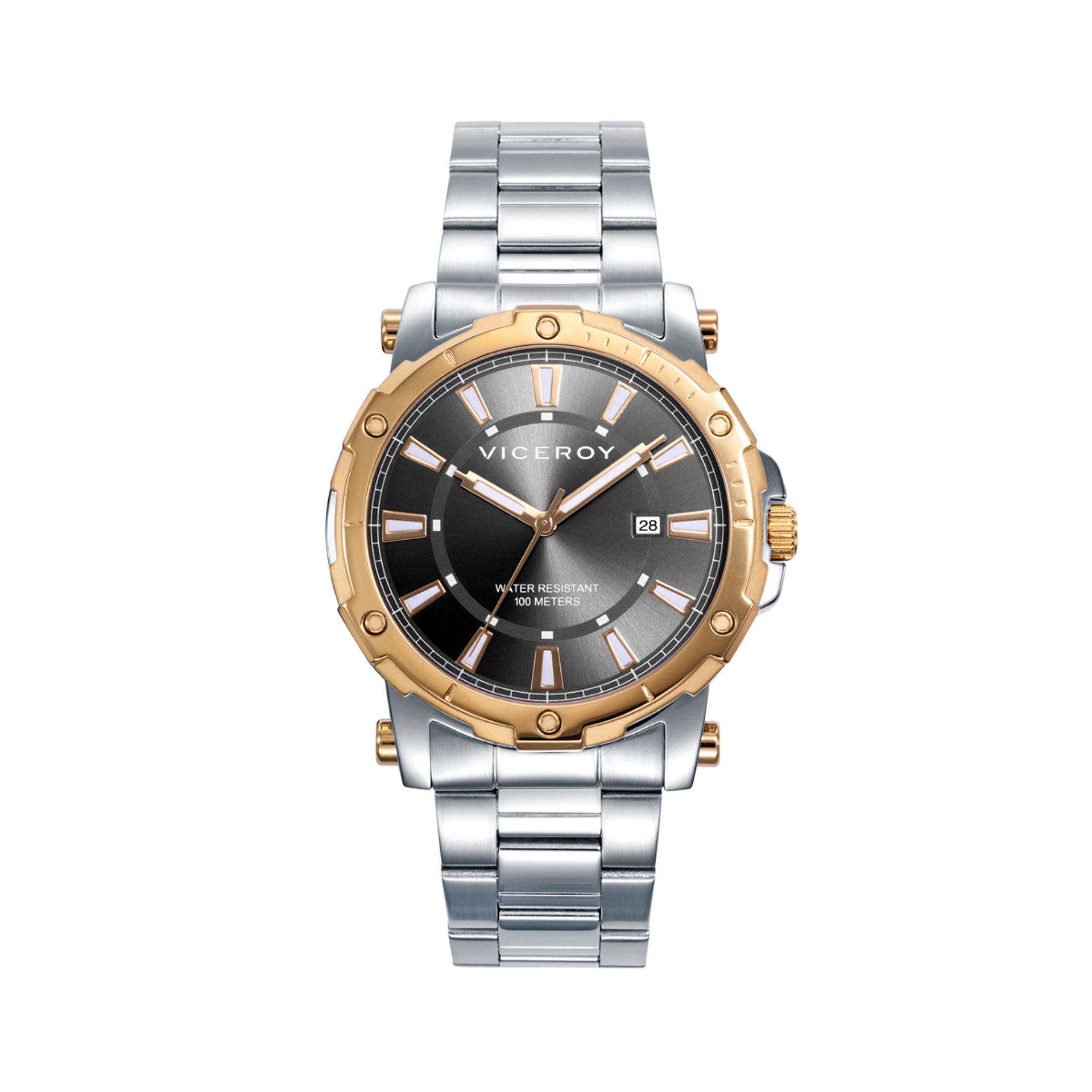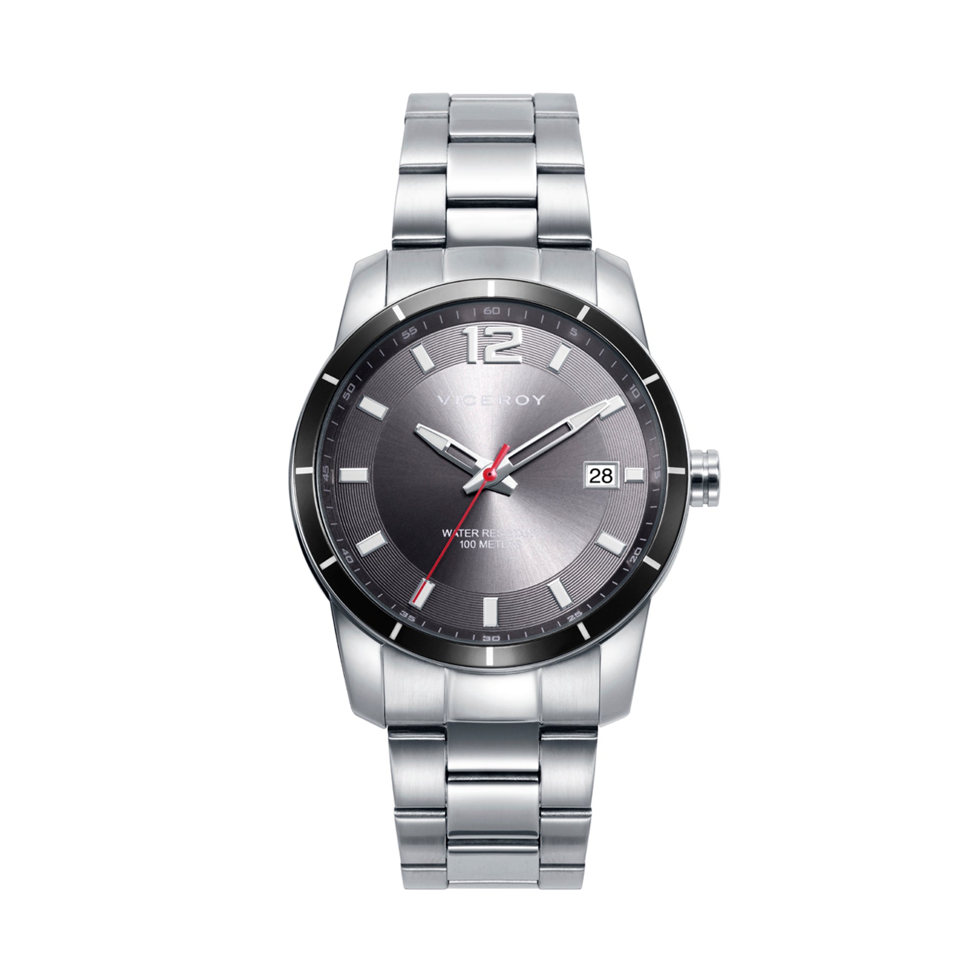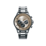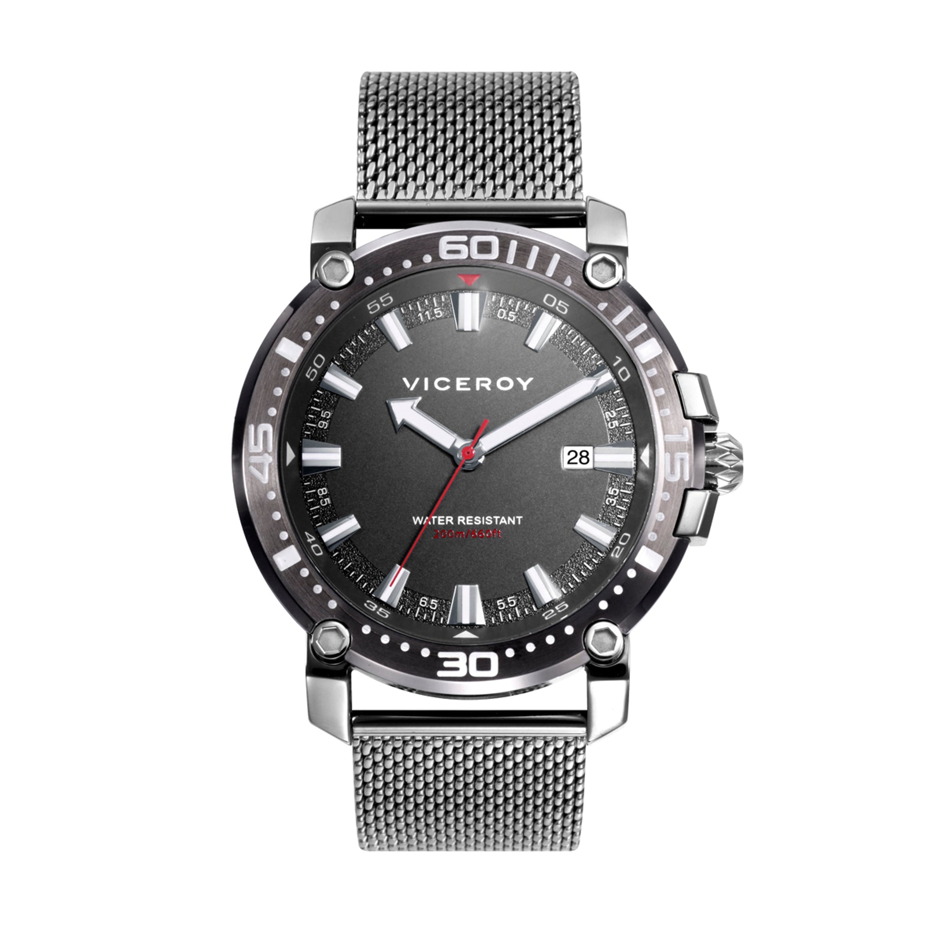 Reloj caja de acero Ip gris 5 atm y malla milanesa de acero Ip gris con movimiento cuarzo
