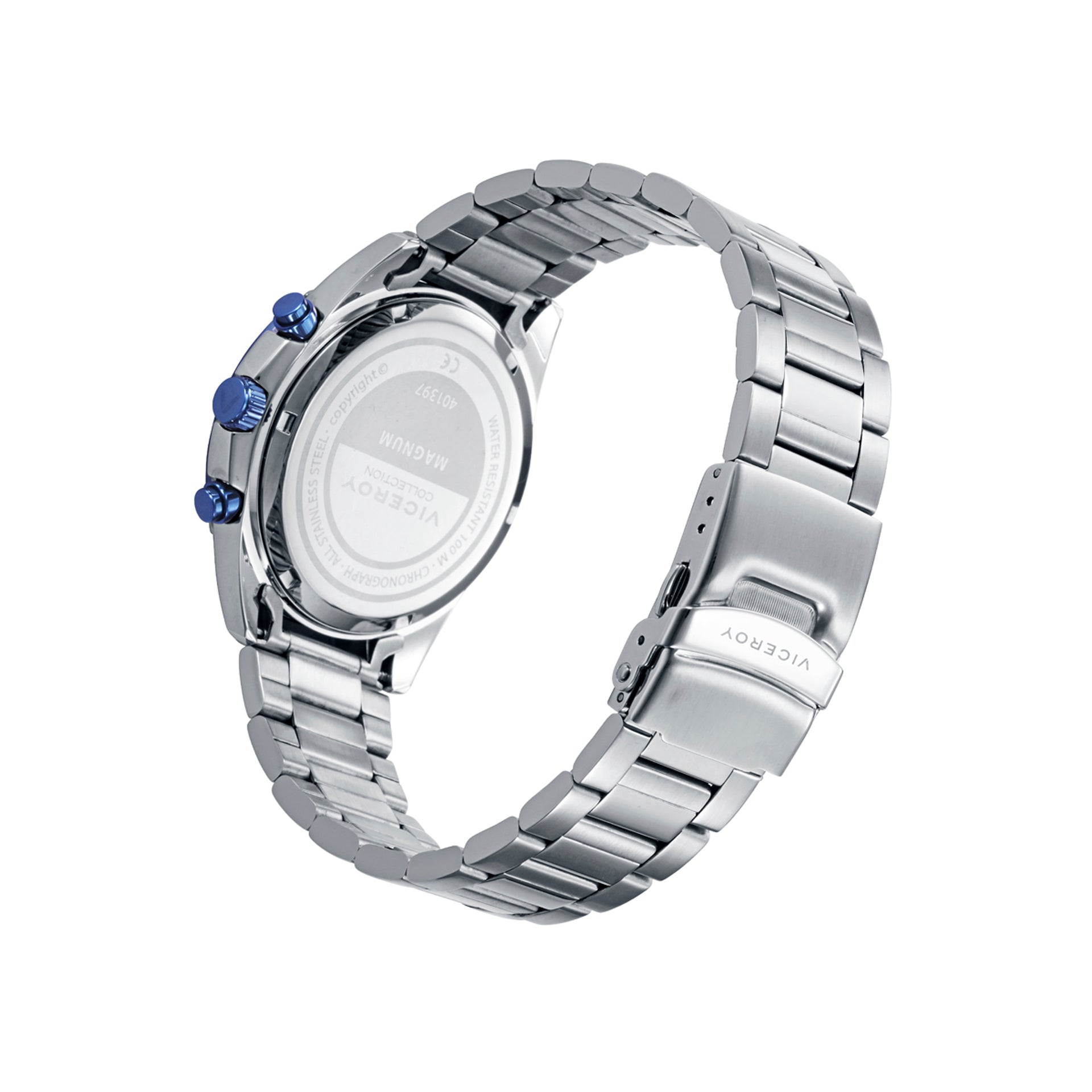 Reloj caja de acero con bisel Ip azul 10 atm y brazalete de acero con movimiento cuarzo
