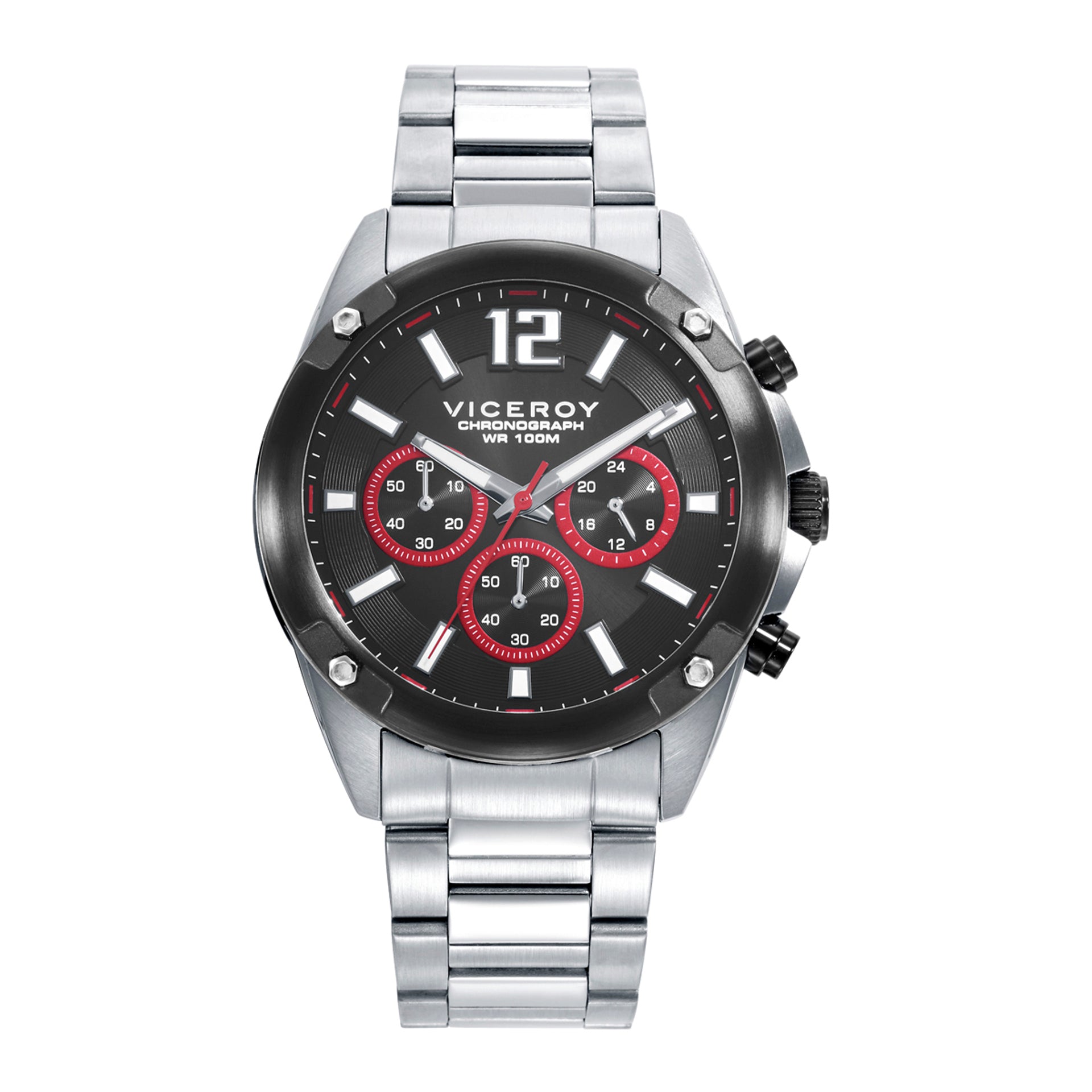 Reloj caja de acero con bisel Ip negro 10 atm y brazalete de acero con movimiento cuarzo