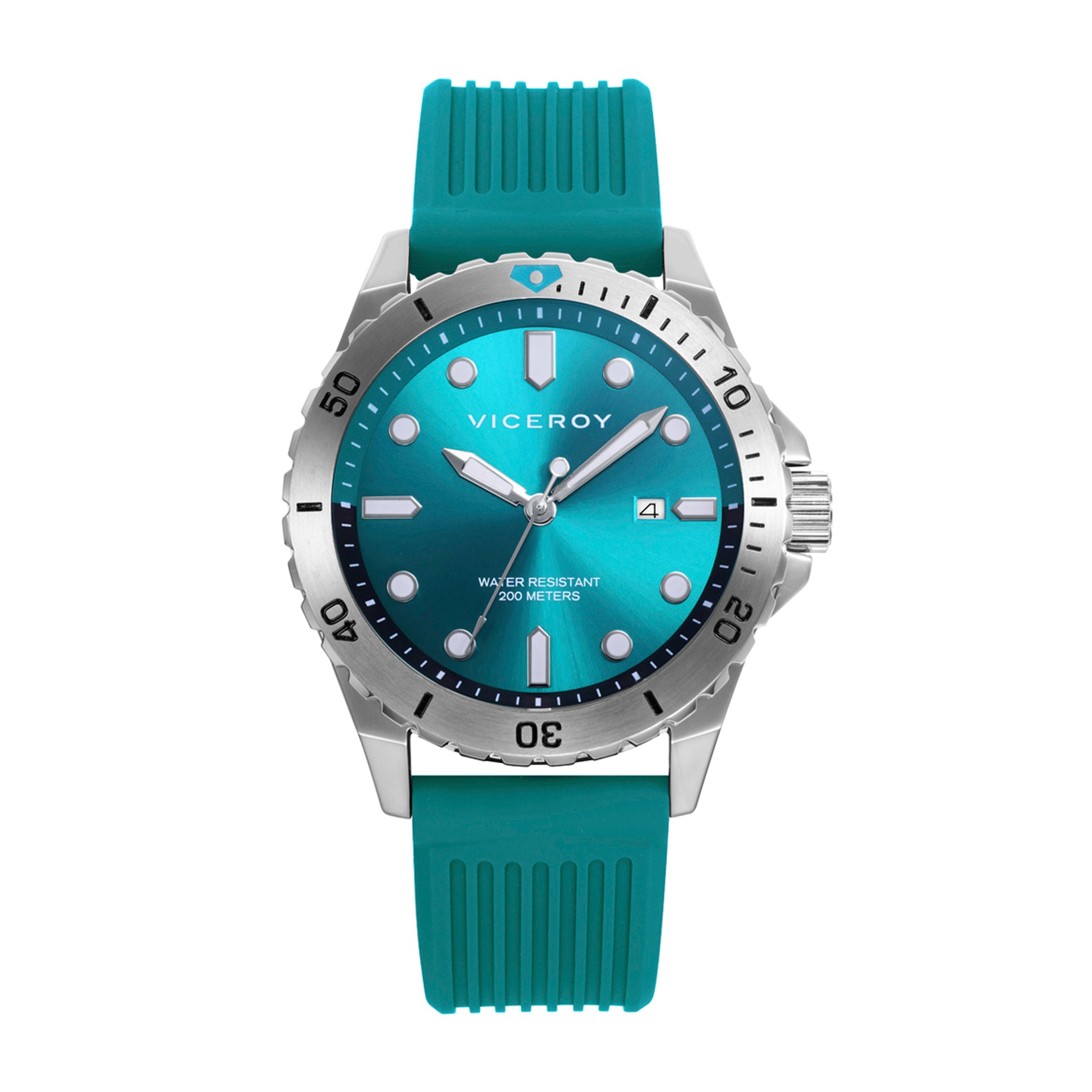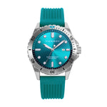 Reloj caja de acero con bisel Ip verde rotatorio 20 atm y correa de silicona en color verde con movimiento cuarzo