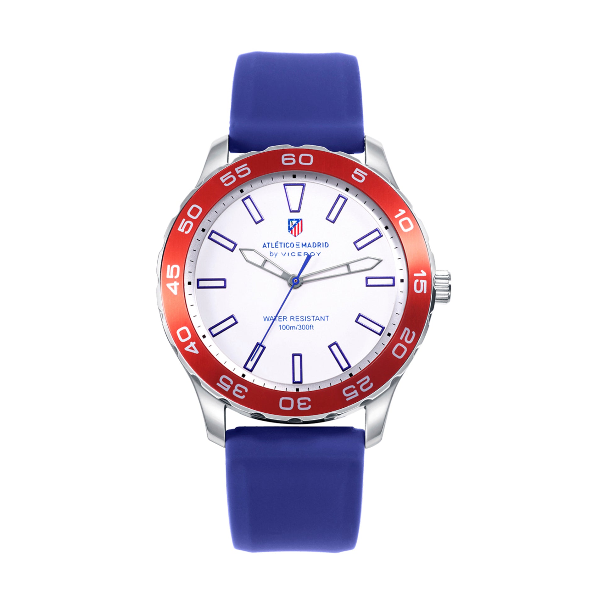 Reloj caja de acero con bisel Ip azul rotatorio 20 atm y correa de silicona en color azul con movimiento cuarzo