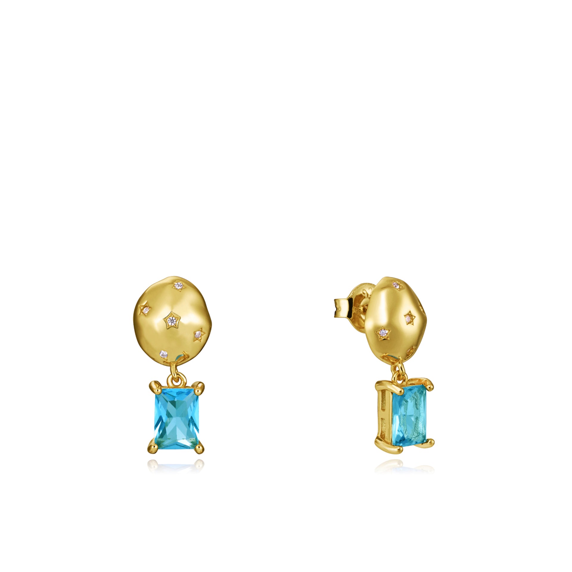 Pendientes Trend de plata de ley bañado en oro con cristal azul