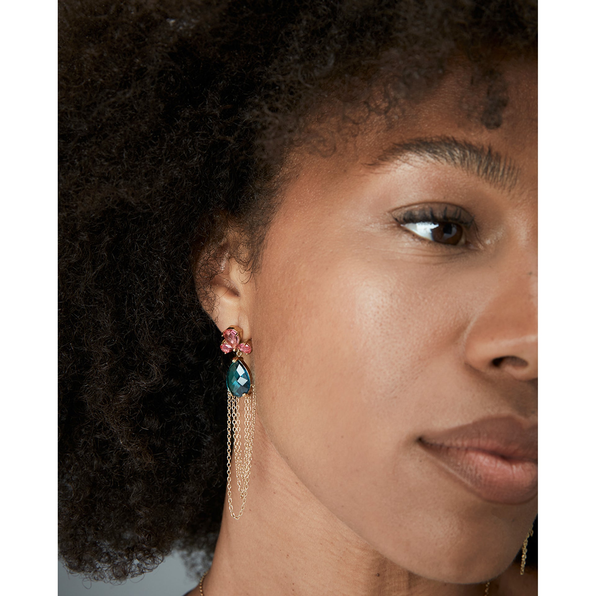 Pendientes de mujer de acero chapado plata 999 con cristales azules y verdes y cadena colgante