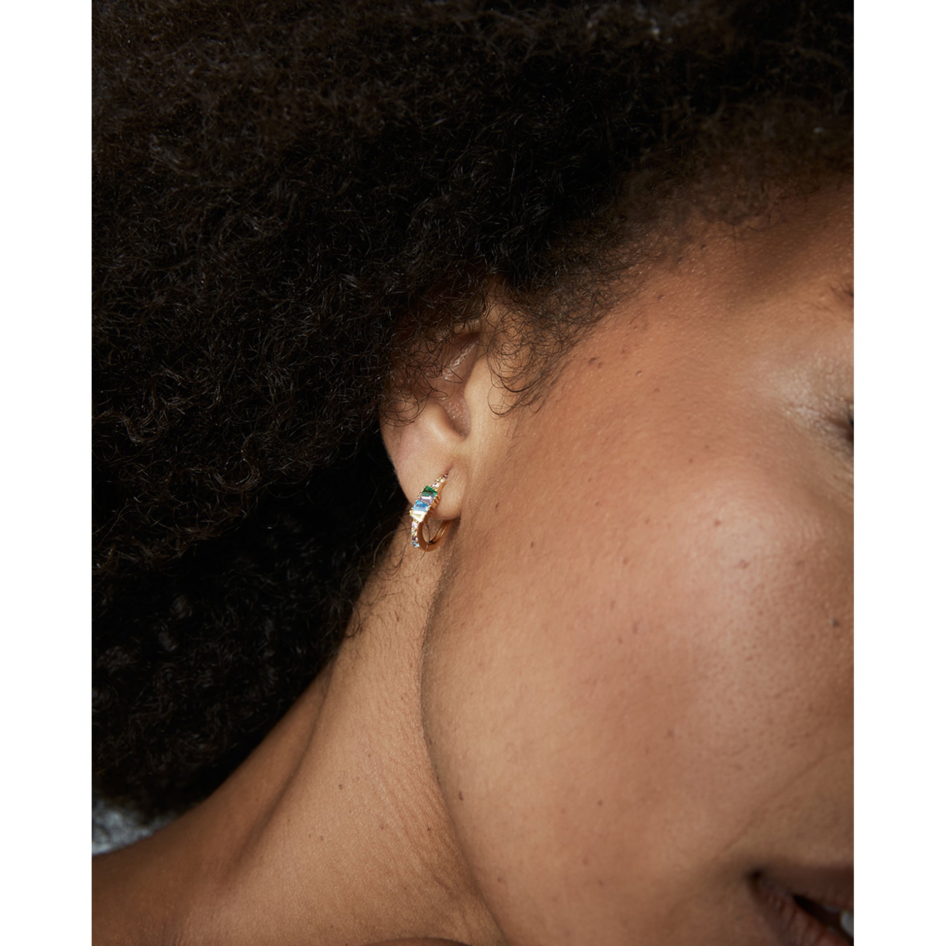 Pendientes de plata de primera ley con baño de oro y aro con circonitas