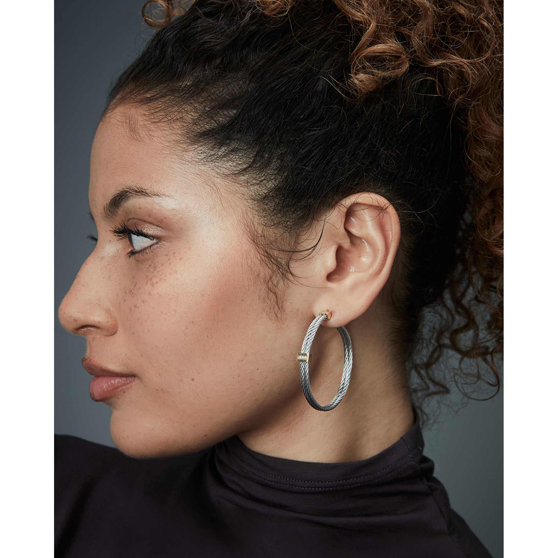 Pendientes de plata de primera ley con baño de rodio, aro colgante