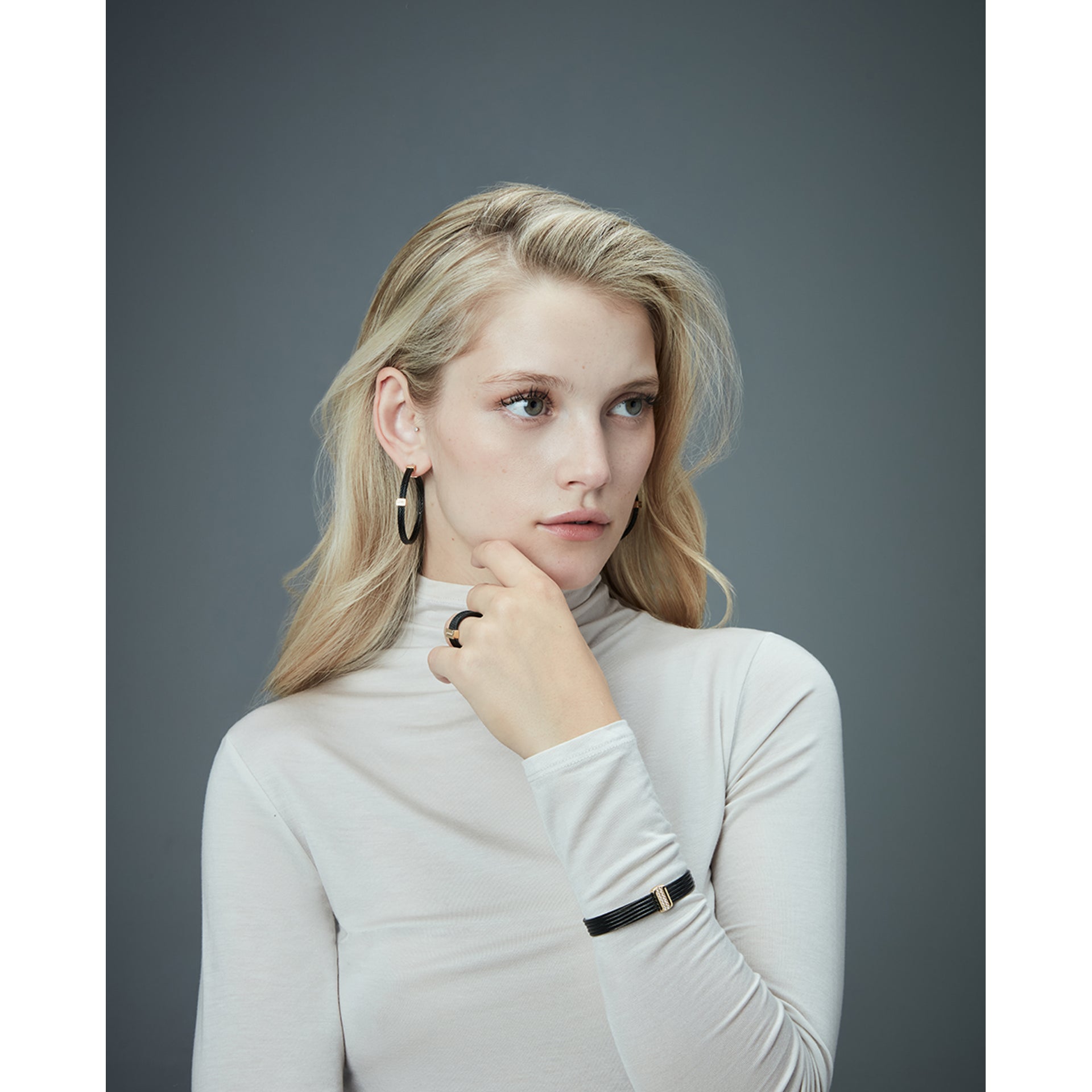 Pendientes de mujer de acero Ip negro y dorado doble cable unido con barra con circonitas
