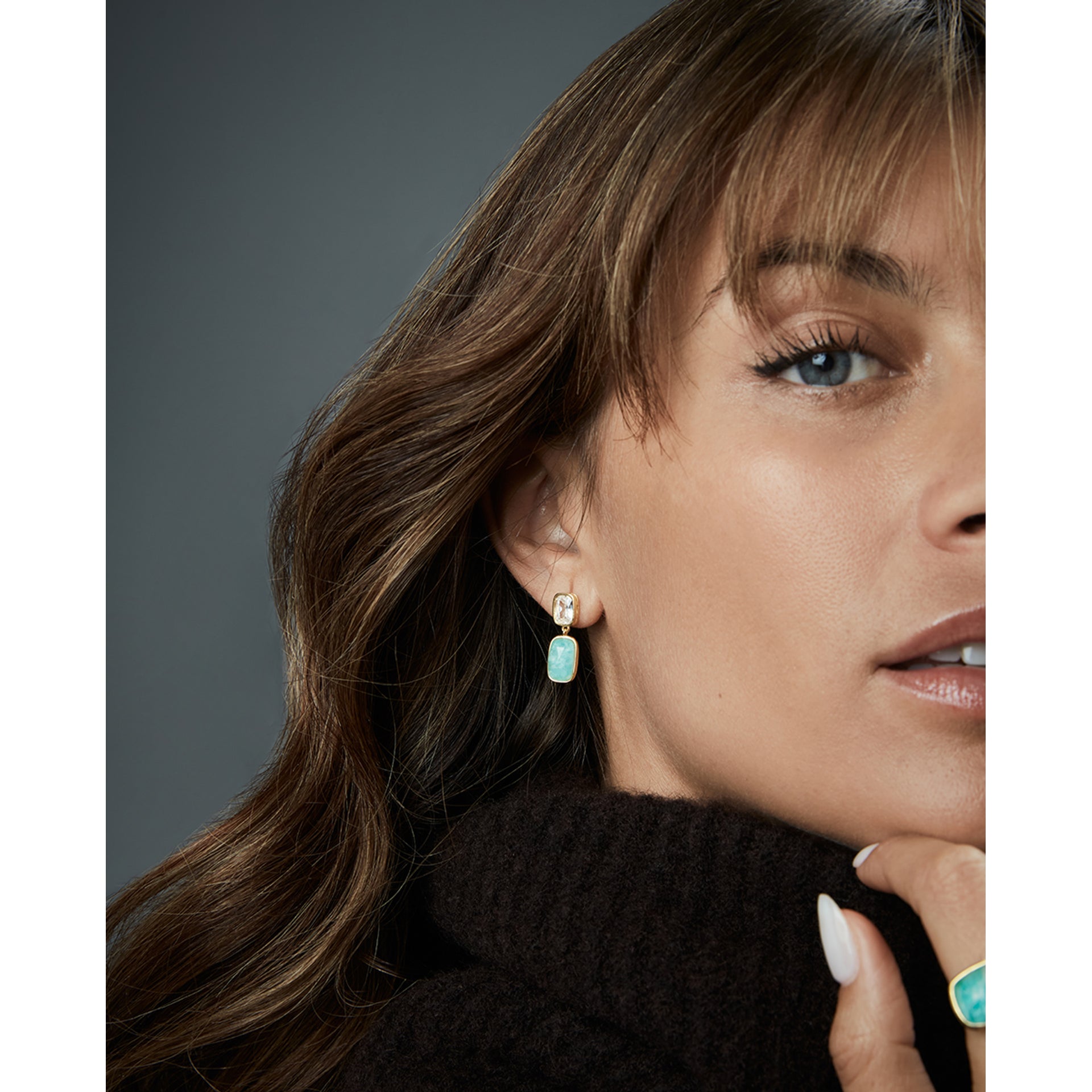 Pendientes de mujer de acero Ip dorado con colgante reversible con piedra natural y madre perla