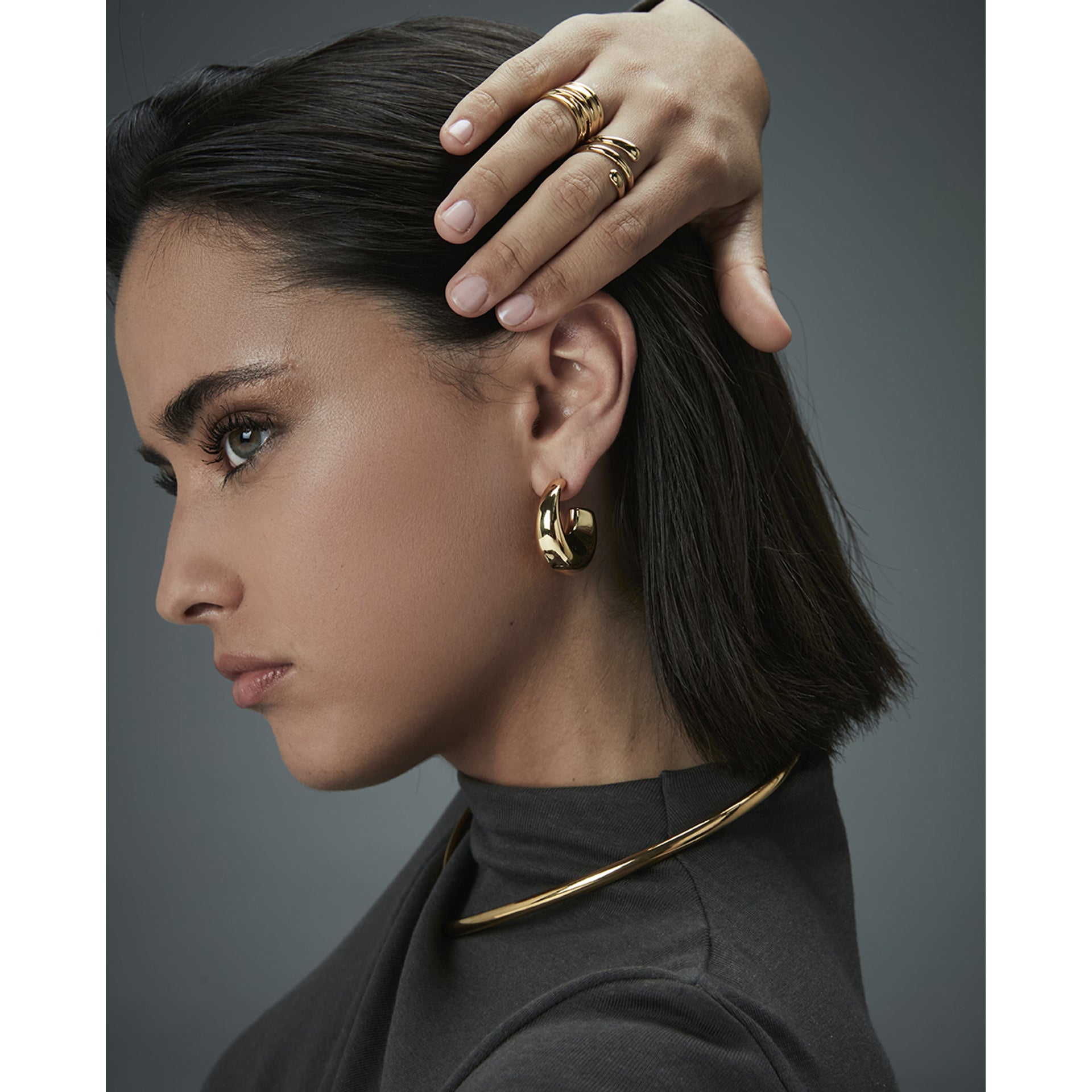 Pendientes de mujer de acero Ip dorado aro abierto volumen