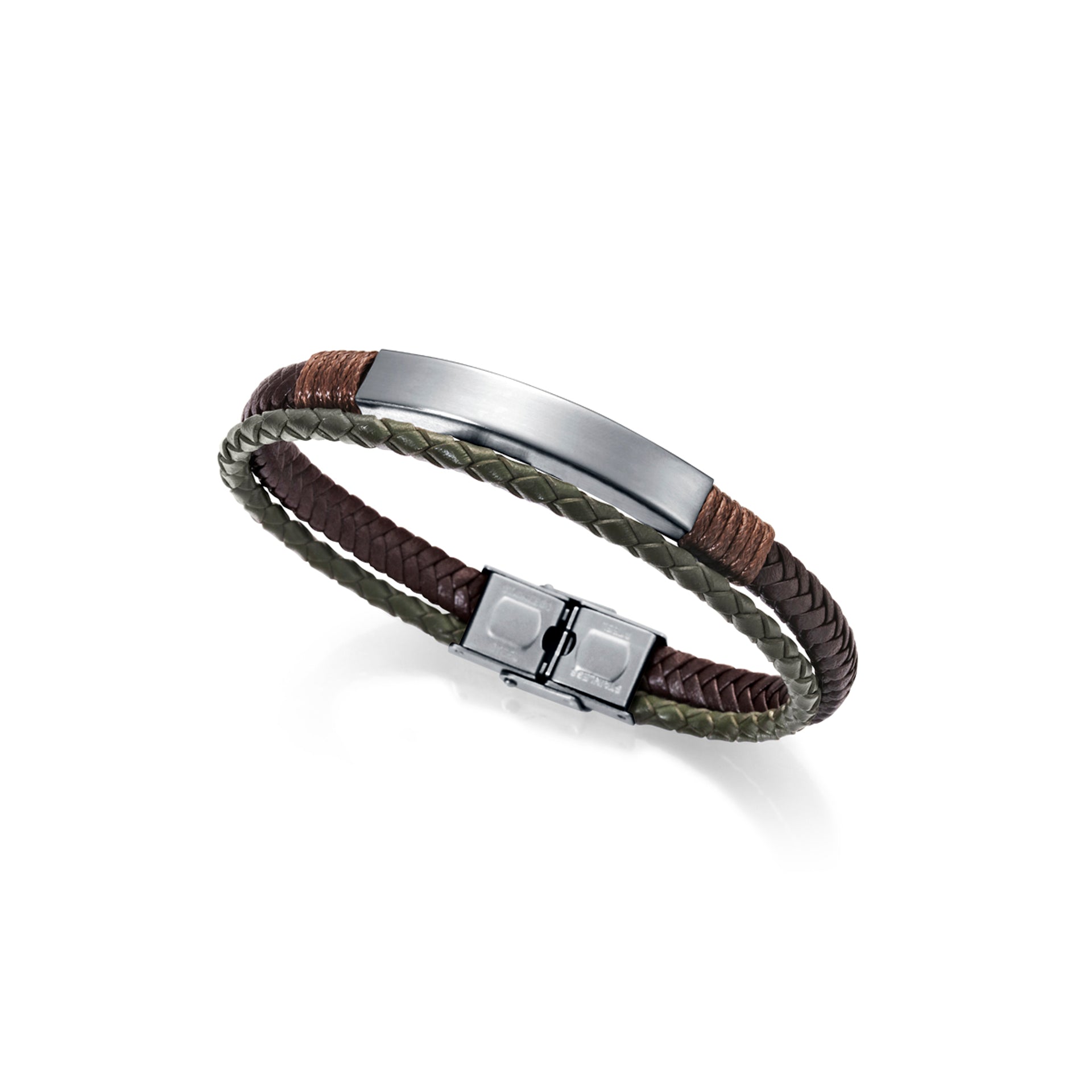Pulsera de hombre Magnum con placa de acero y piel multicolor