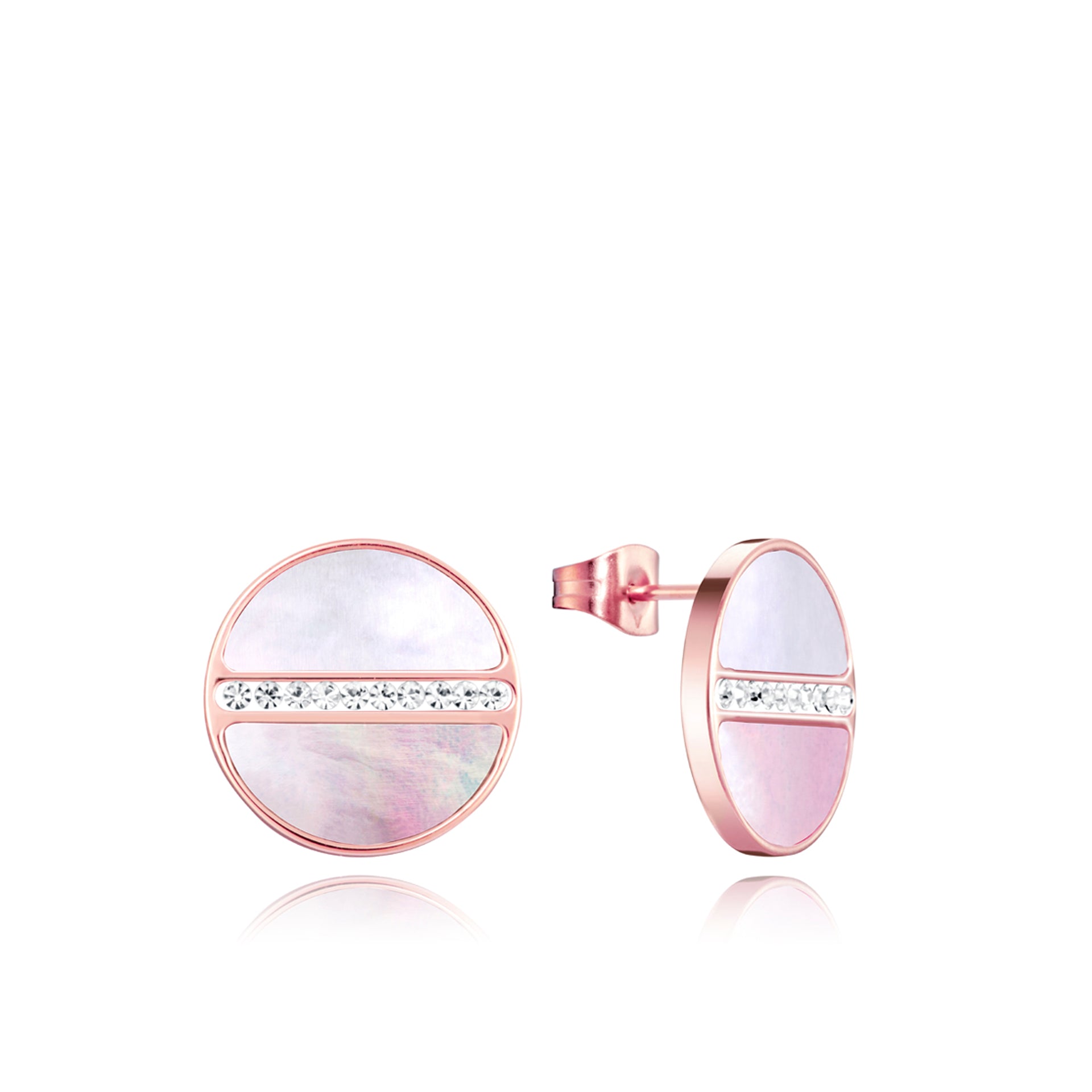 Pendientes Chic de acero IP rosado con madre perla rosa y CZ