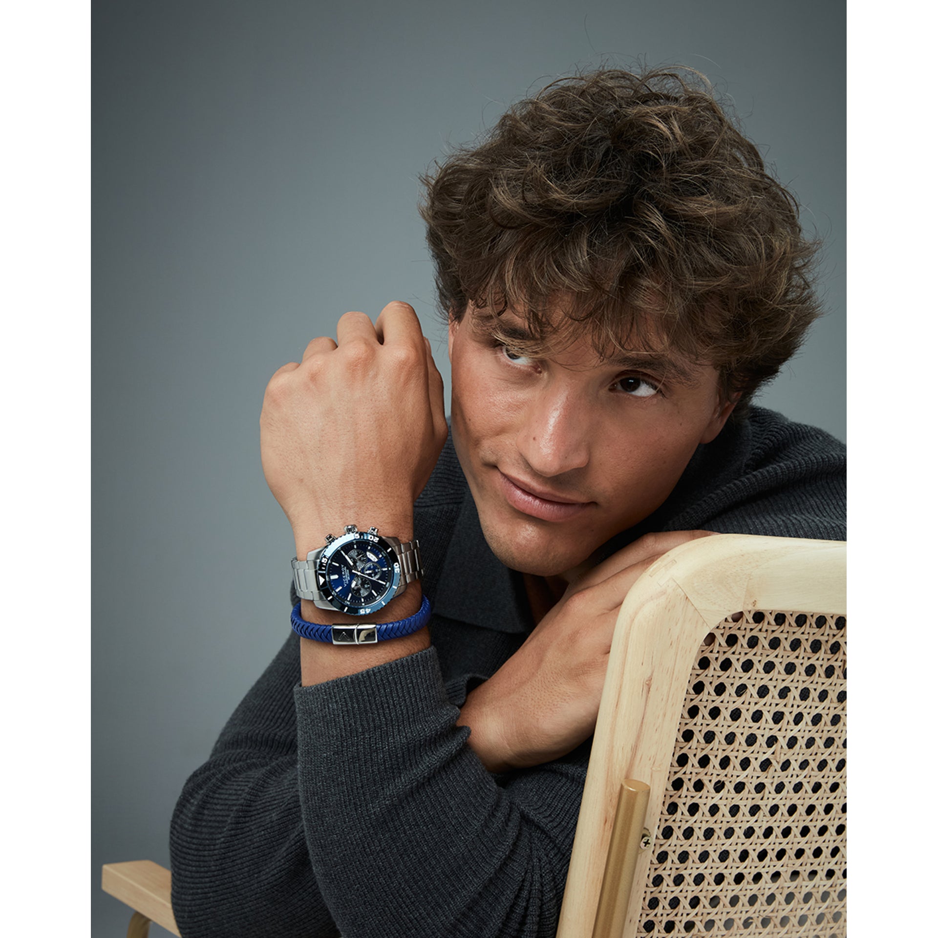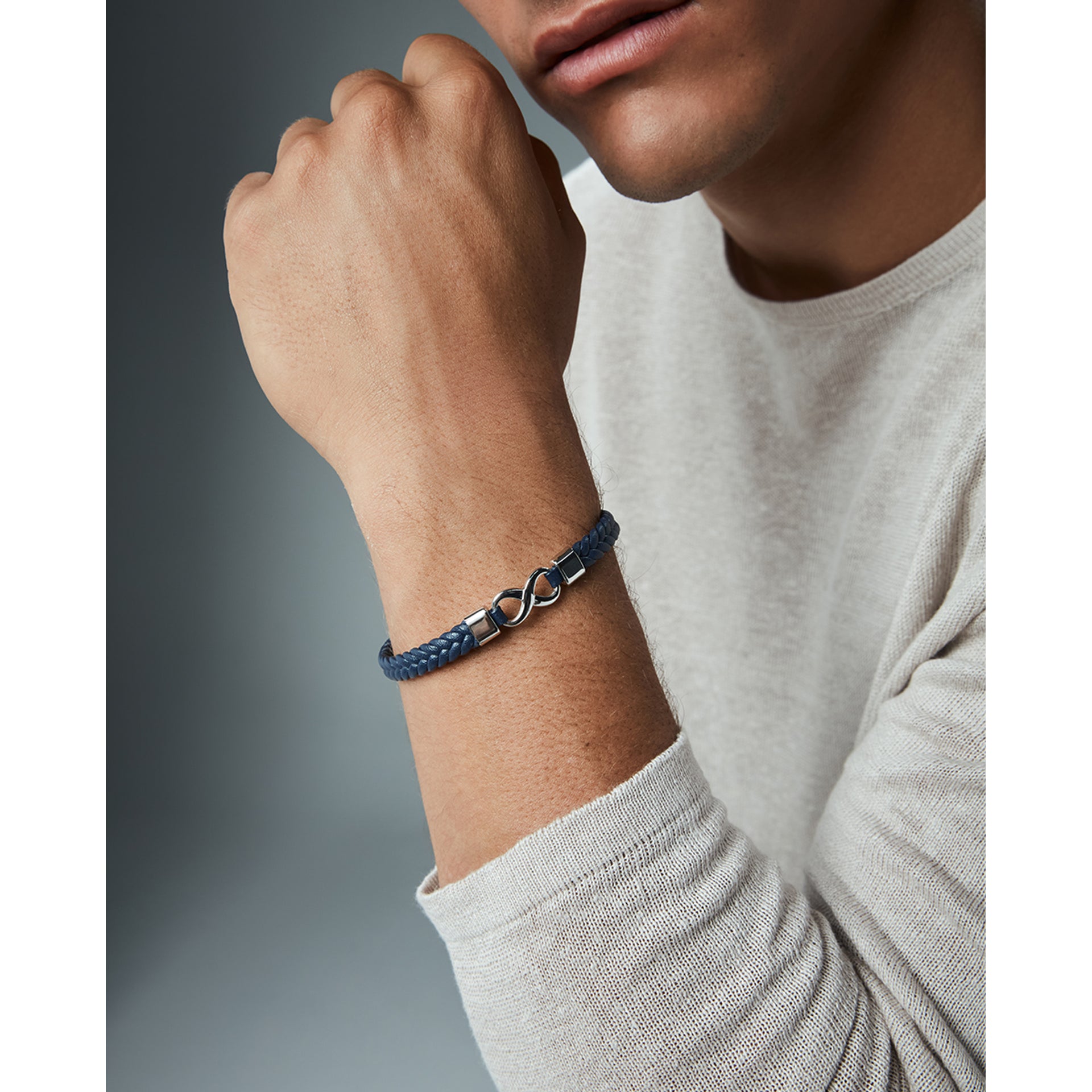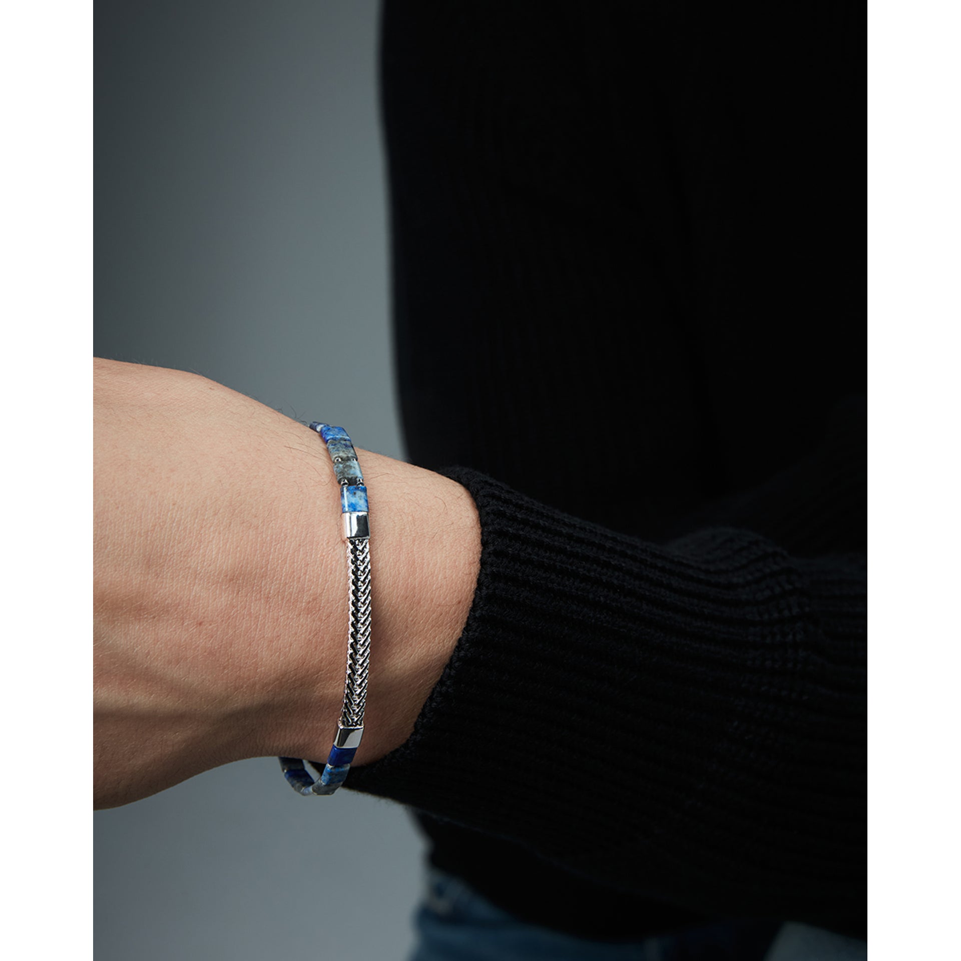 Pulsera de hombre de acero y piel azul trenzada con esmalte azul