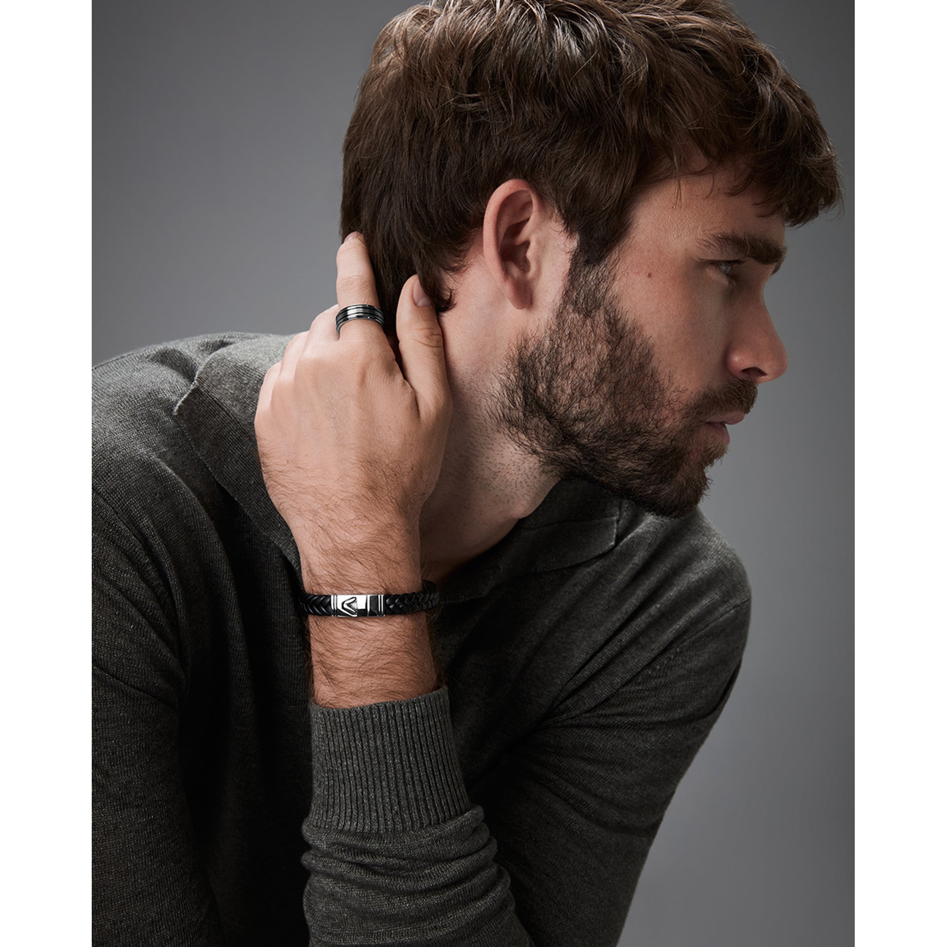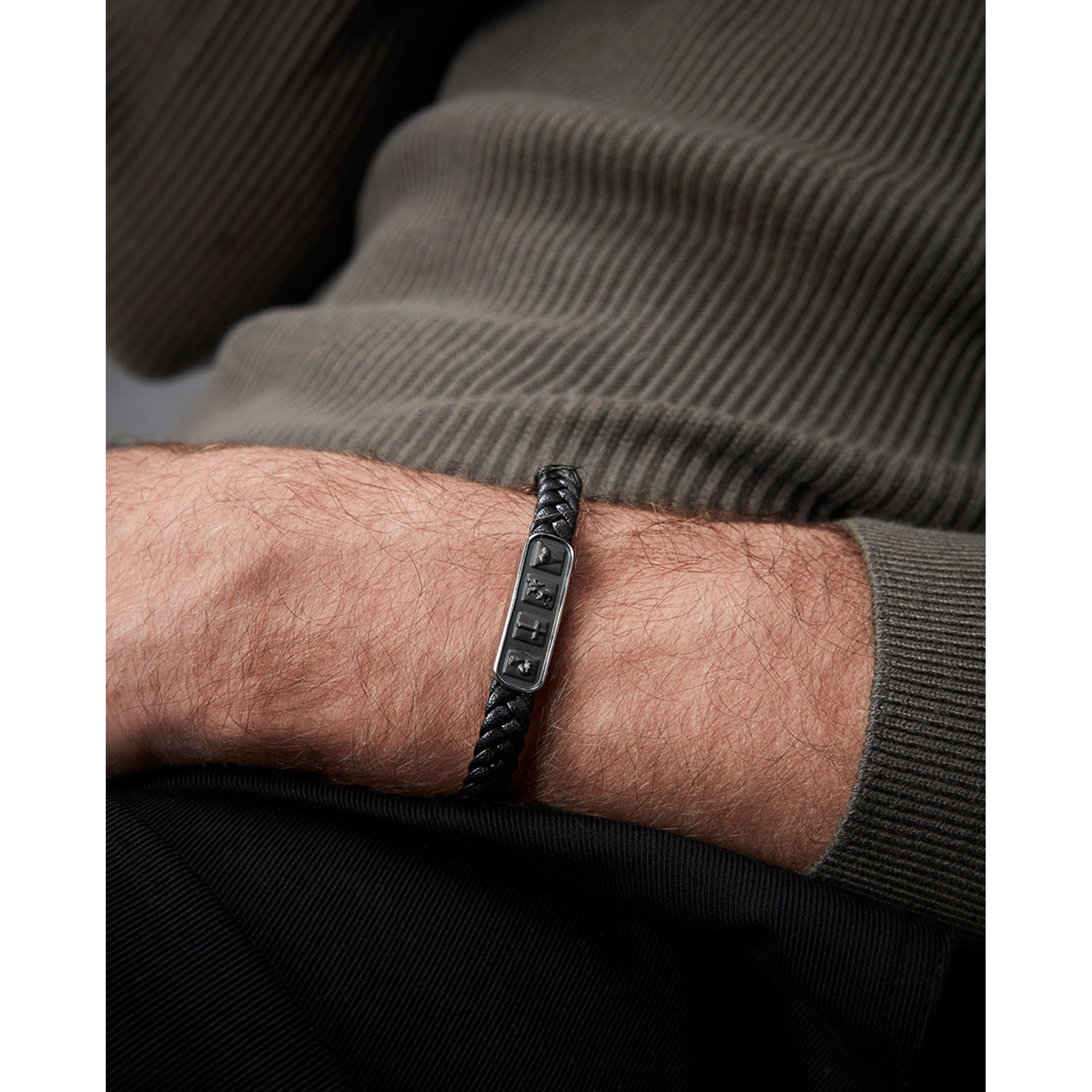 Pulsera de hombre de acero y piel negra con diseño en Ip negro