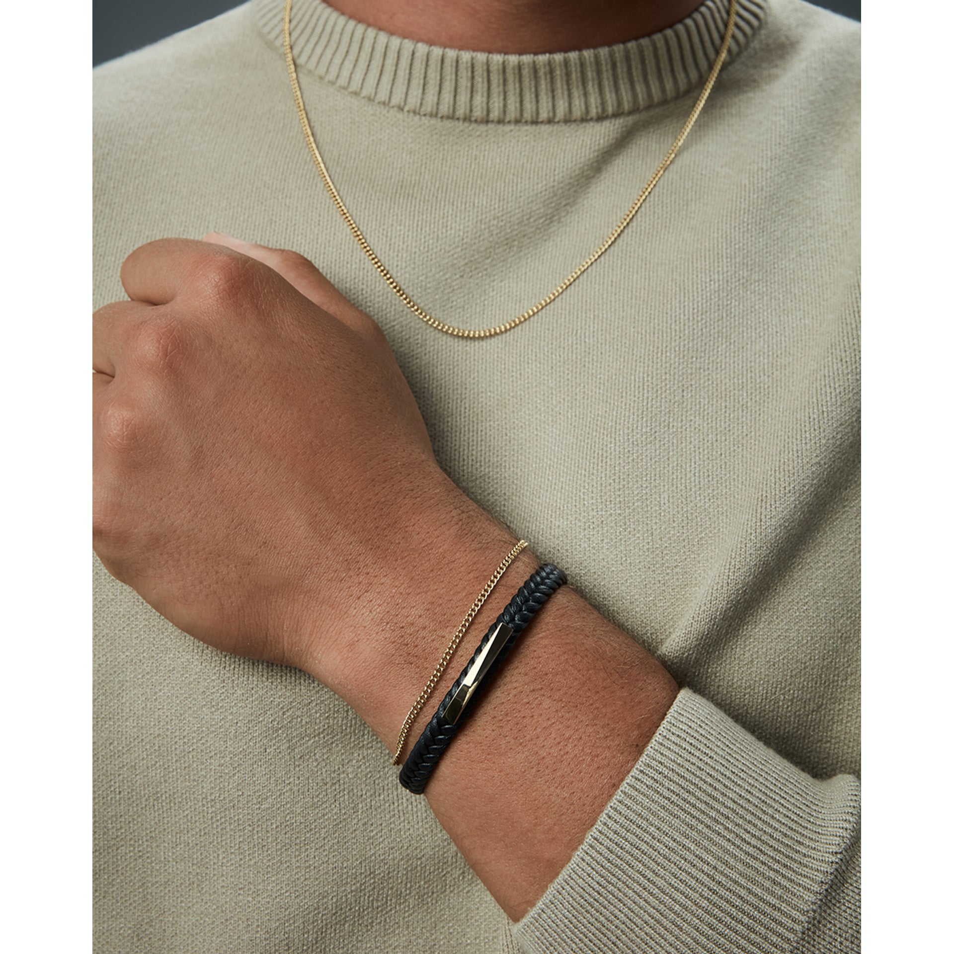 Pulsera de hombre de acero Ip dorado con placa y piel trenzada negra