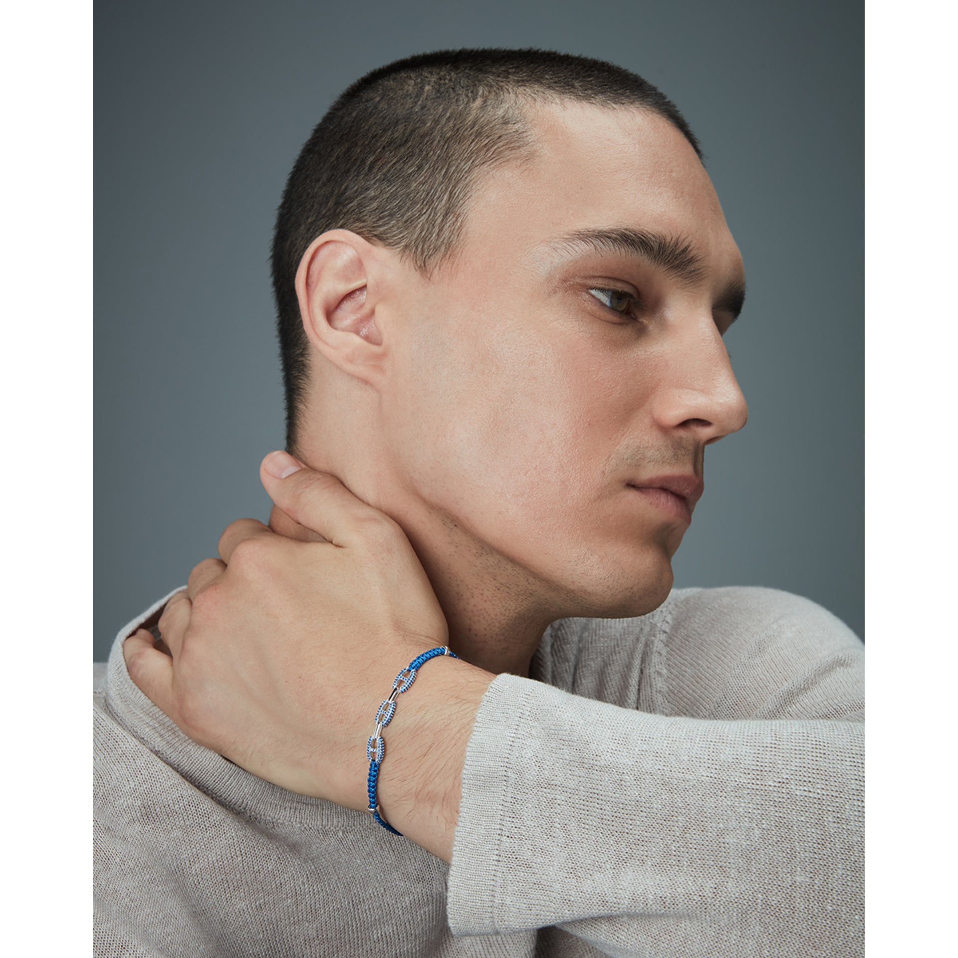 Pulsera de plata de primera ley con baño de rodio y cordon azul
