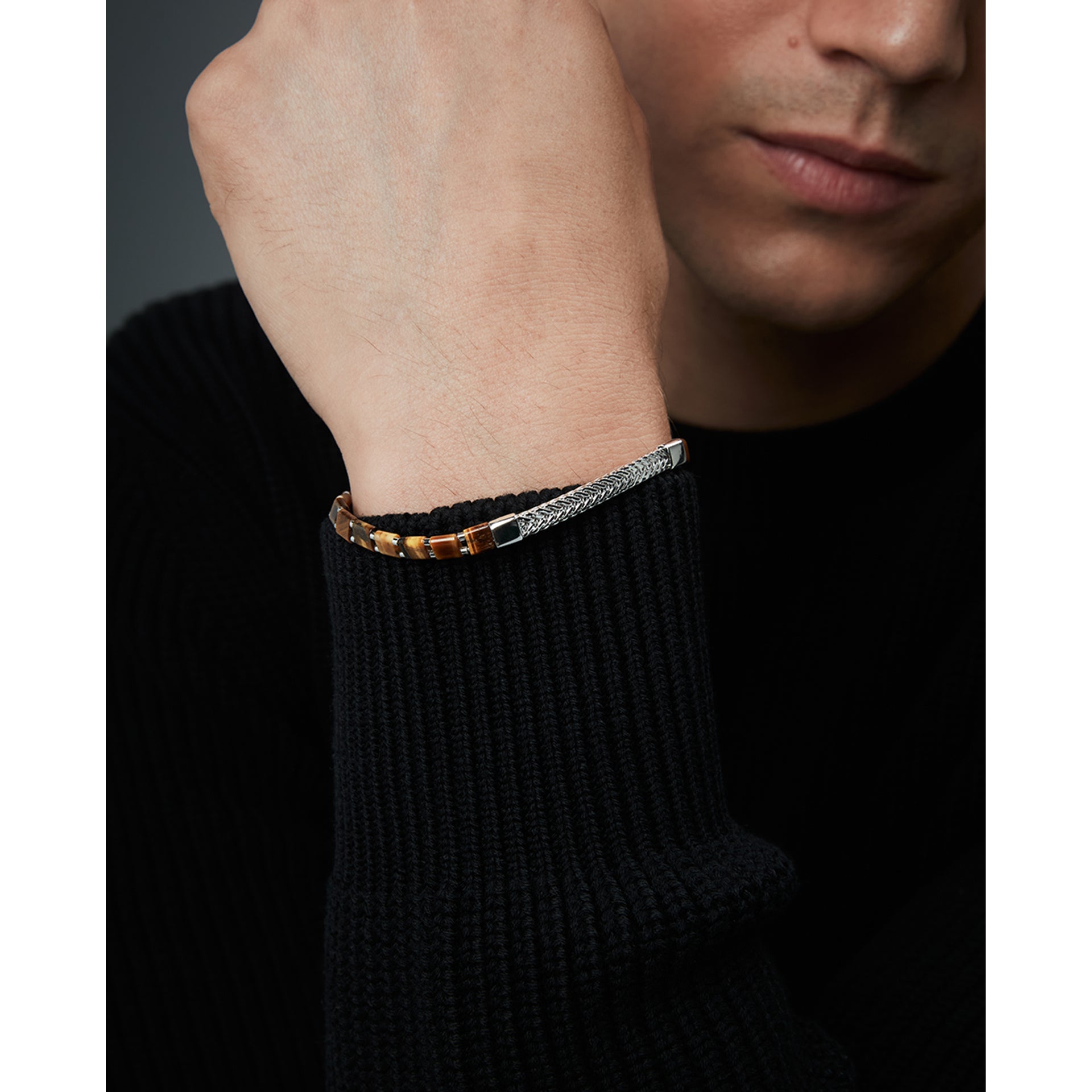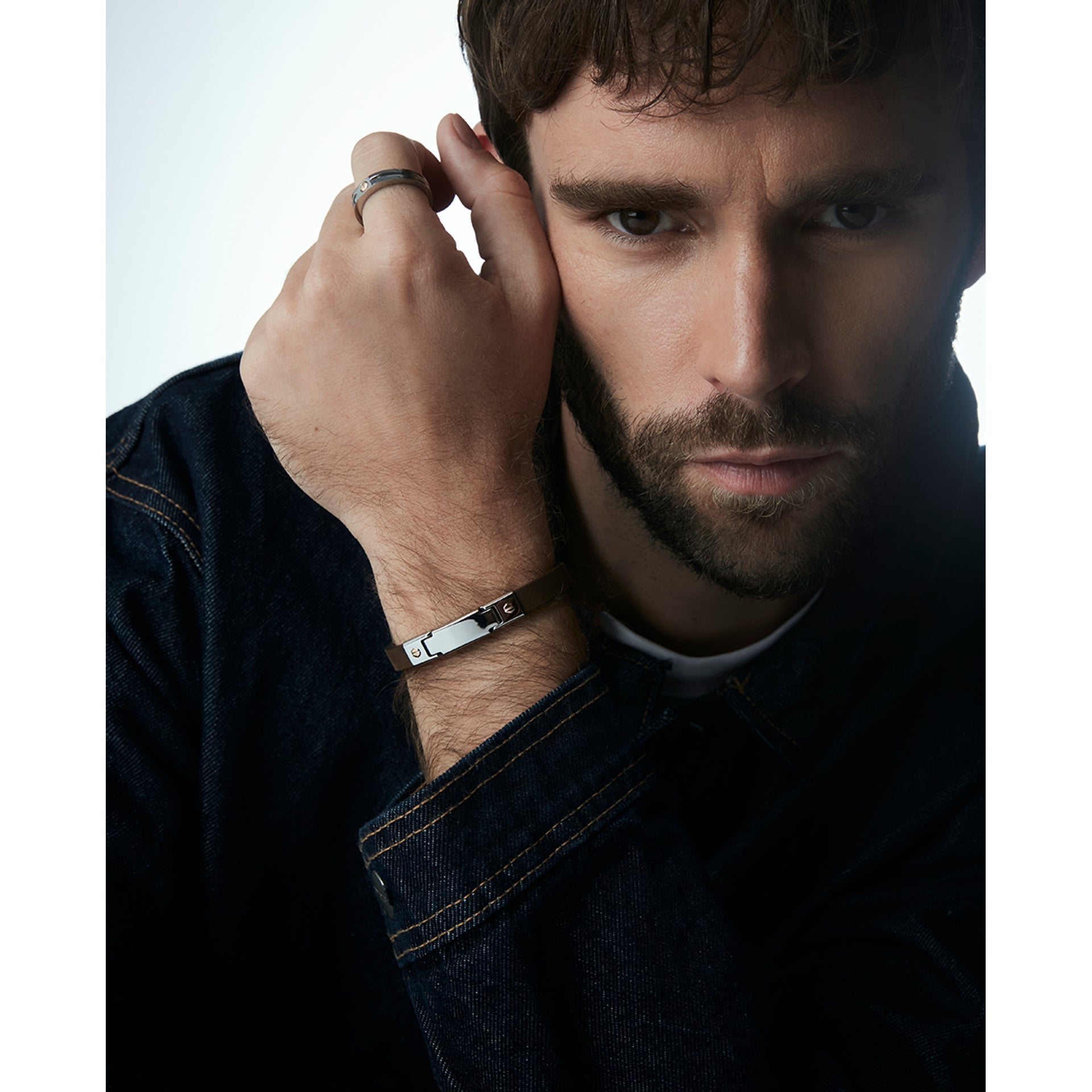 Pulsera de hombre de acero y piel marrón trenzada con esmalte marrón