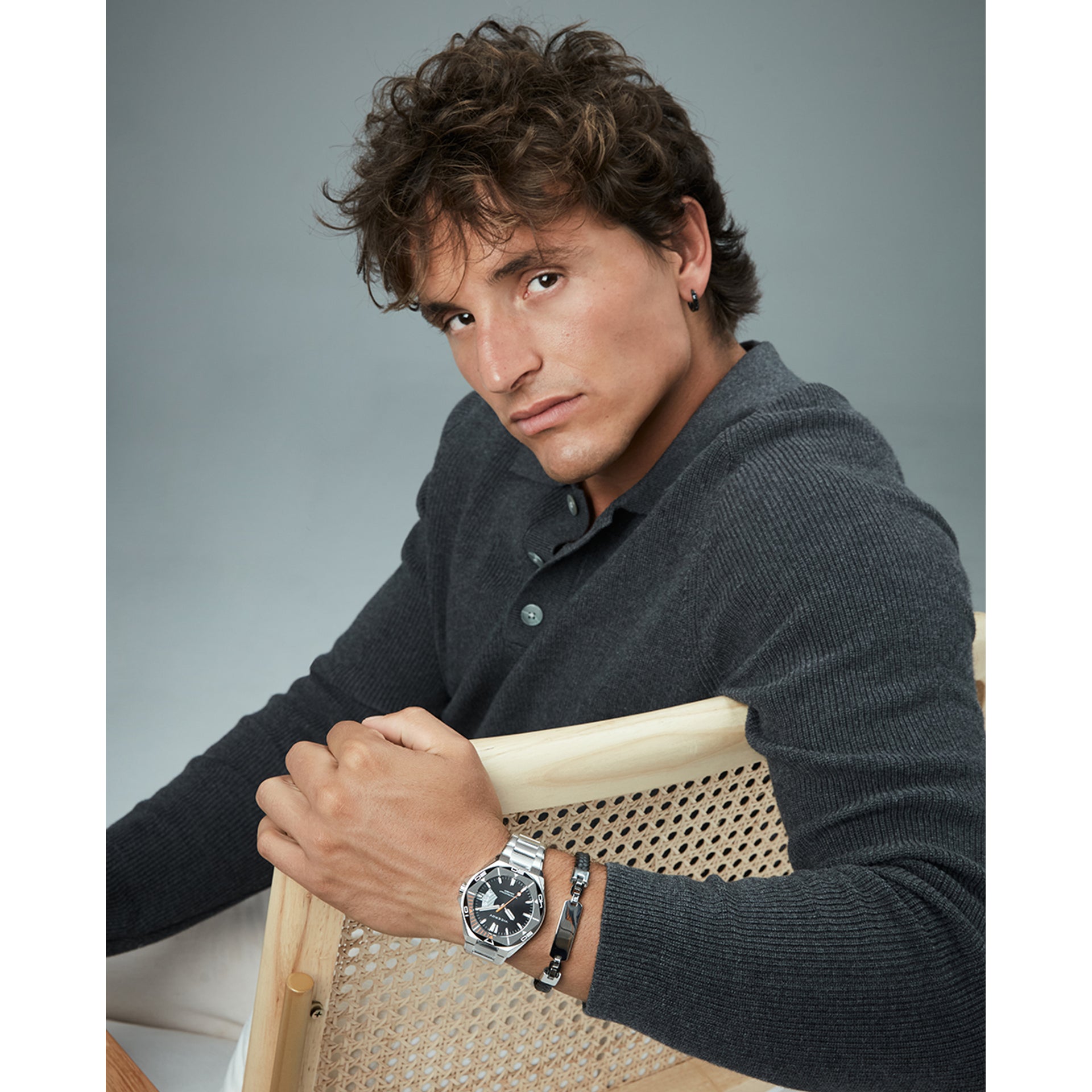 Pulsera de hombre de acero y piel negra con esmalete negro