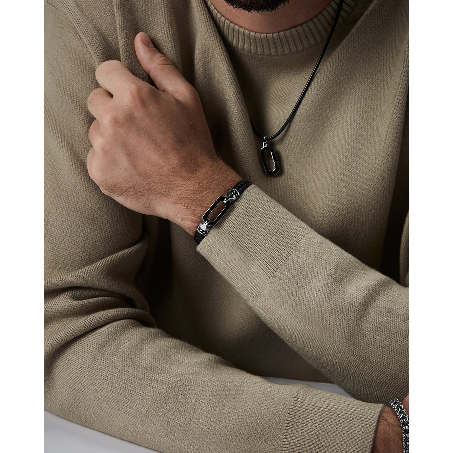Pulsera de hombre de acero y piel negra con diseño en Ip negro