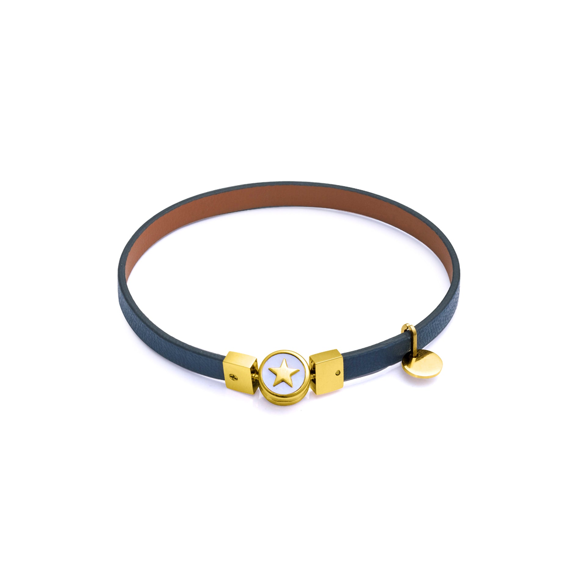 Pulsera Eco de acero reciclado e Ip dorado con correa vegana marrón